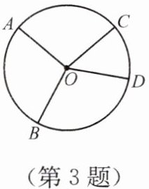 3. 如图,在$\odot O$中,$\angle AOB= 2\angle COD$,则$\widehat{AB}与2\widehat{CD}$的大小关系是( ).