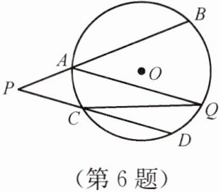 6. 如图,点A、B、C、D在$\odot O$上,直线AB、CD相交于点P,$AQ // CD$,交$\odot O$于点Q.已知$\overset{\frown}{AC}为36^\circ$,$\overset{\frown}{BQ}= 2\overset{\frown}{DQ}$,求$\angle P$的度数.