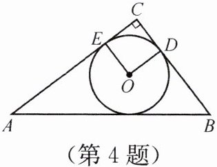 4. 如图,在△ABC中,∠C= 90°,内切圆O分别与BC、AC相切于点D、E.判断四边形ODCE的形状,并说明理由.