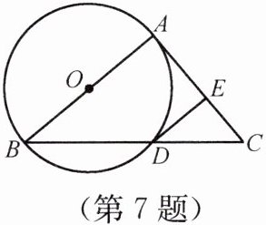 7. 如图,AB是⊙O的直径,AC是⊙O的切线,BC交⊙O于点D,E是AC的中点。判断DE与⊙O的位置关系,并说明理由。