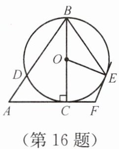 16. 如图,$\triangle ABC$中,$\angle ACB = 90^\circ$,$\angle A = 56^\circ$,以$BC为直径的\odot O交AB于点D$,$E是\odot O$上一点.且$\widehat{CE} = \widehat{CD}$,过点$E作\odot O$的切线,交$AC的延长线于点F$,则$\angle F$等于( ).