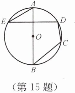 15. 如图,$AB是\odot O$的直径,点$C$、$D$、$E在\odot O$上.若$\angle AED = 20^\circ$,则$\angle BCD$等于( ).