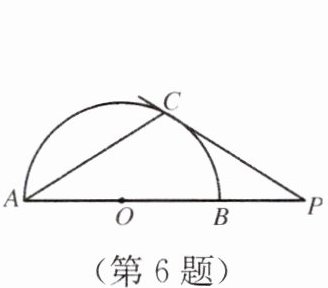 6. 如图,AB是半圆的直径,P是AB延长线上一点,PC切半圆于点C.若∠P= 32°,则∠A等于( ).