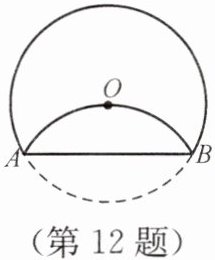 12. 将半径为2的圆形纸片折叠后,圆弧恰好经过圆心O(如图),则折痕AB的长为( ).