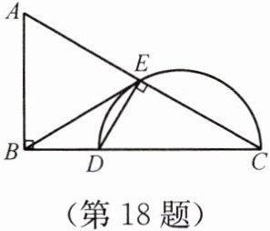 18. 如图,在△ABC中,∠ABC= 90°,∠C= 30°,AC的垂直平分线交BC于点D,交AC于点E.