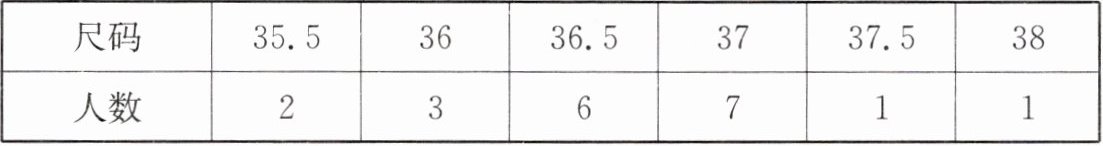 2. 某鞋厂为了解初中学生穿鞋的尺码情况,统计了某班20名女生所穿尺码,结果如下: