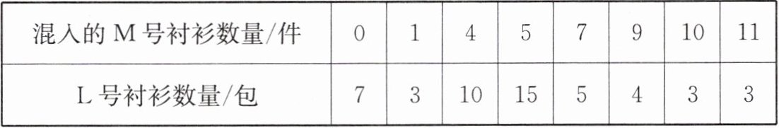 | 混入的M号衬衫数量/件 | L号衬衫数量/包 |