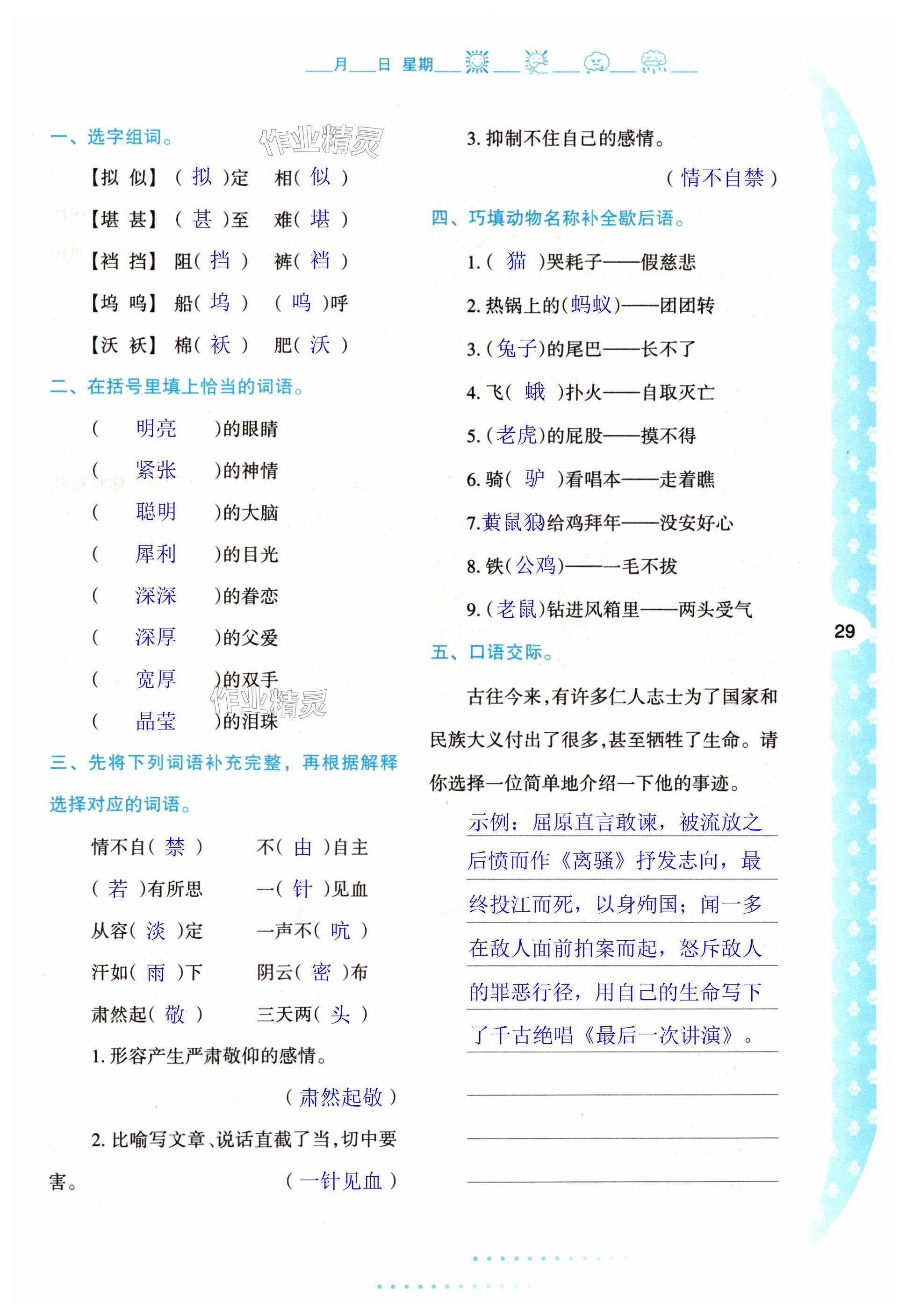 注:目前有些书本章节名称可能整理的还不是很完善,但都是按照顺序排列的,请同学们按照顺序仔细查找。练习册 2024年暑假作业与生活陕西人民教育出版社五年级语文人教版 答案主要是用来给同学们做完题方便对答案用的,请勿直接抄袭。