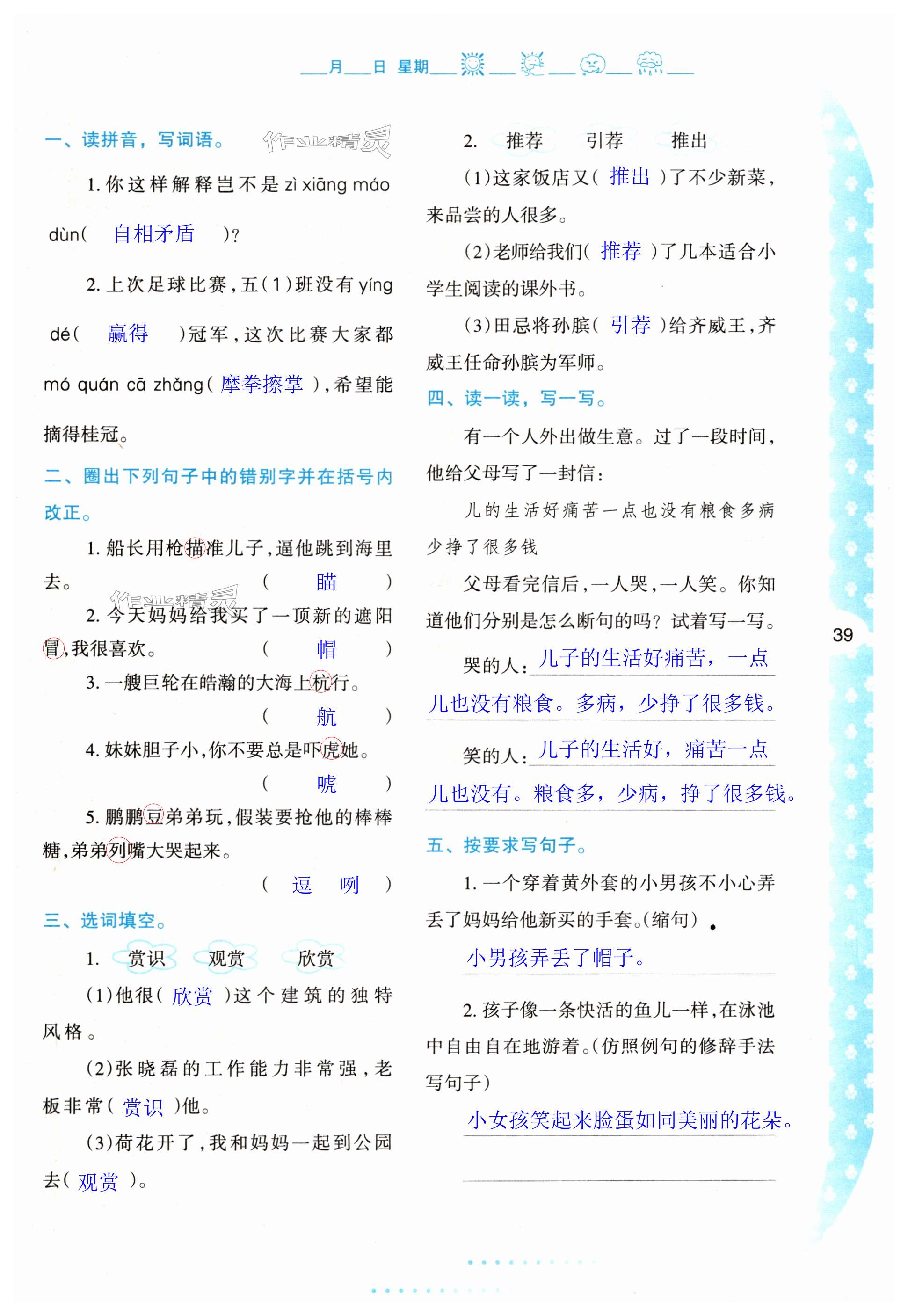 2024年暑假作业与生活陕西人民教育出版社五年级语文人教版