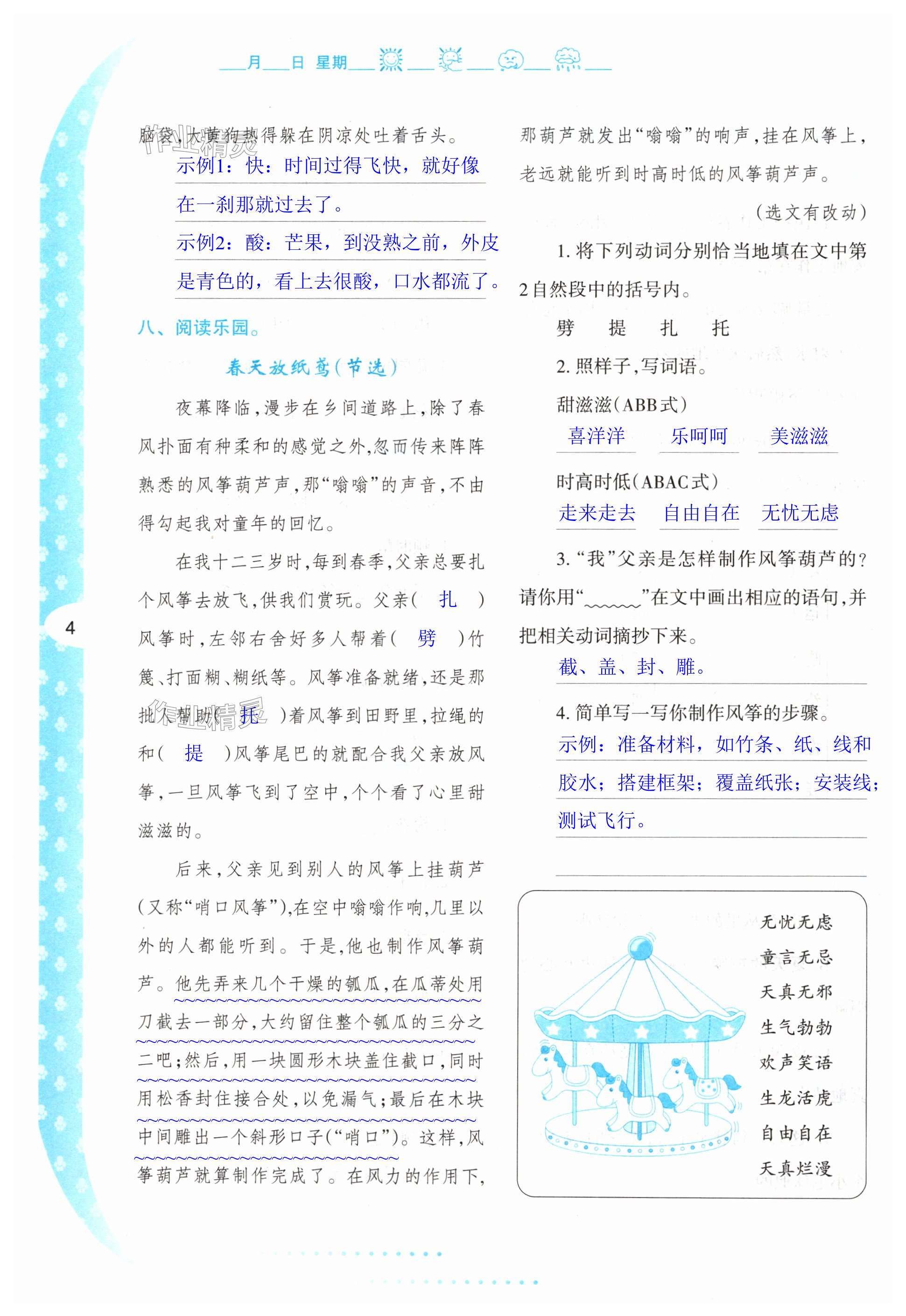 注:目前有些书本章节名称可能整理的还不是很完善,但都是按照顺序排列的,请同学们按照顺序仔细查找。练习册 2024年暑假作业与生活陕西人民教育出版社五年级语文人教版 答案主要是用来给同学们做完题方便对答案用的,请勿直接抄袭。