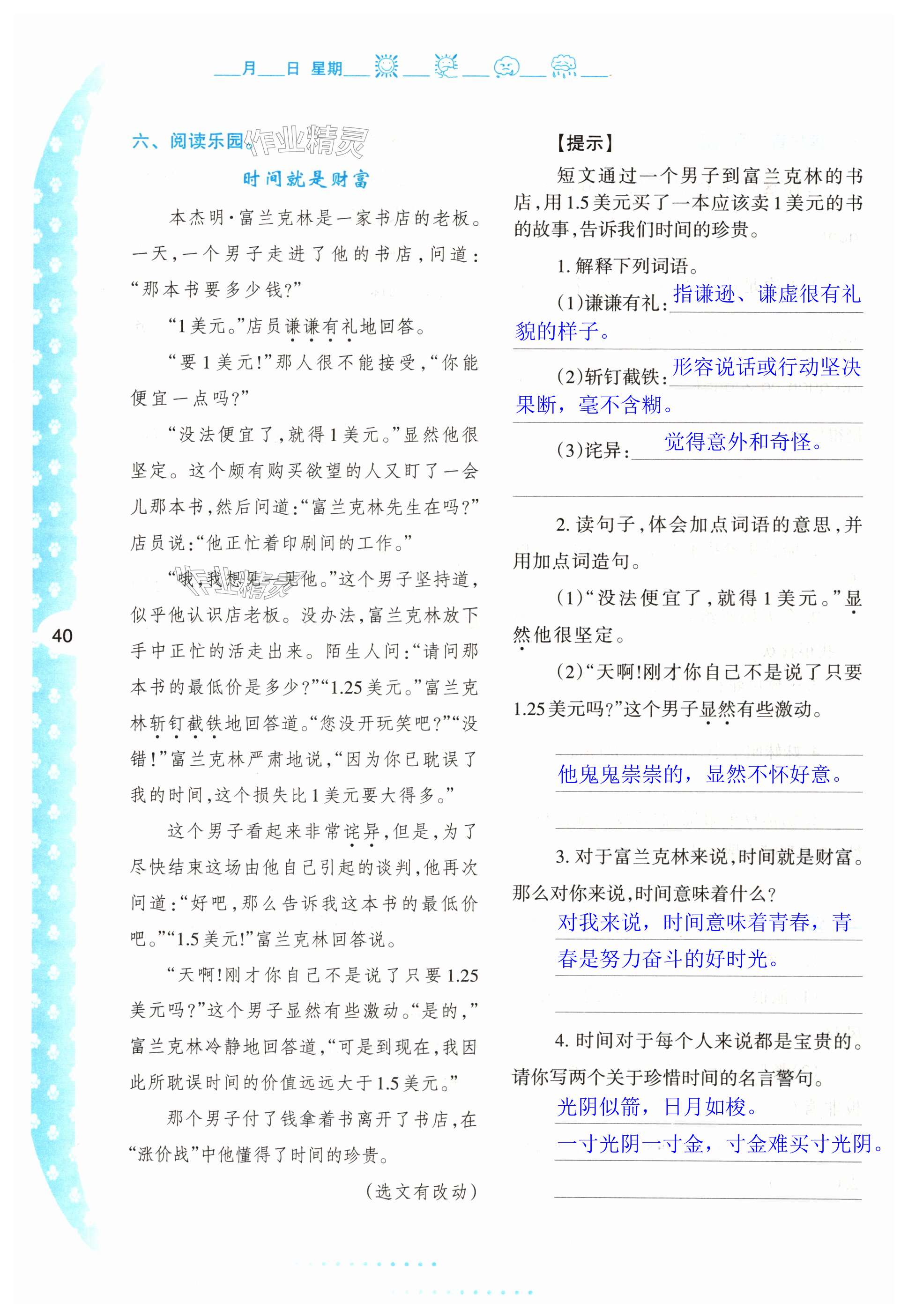 2024年暑假作业与生活陕西人民教育出版社五年级语文人教版