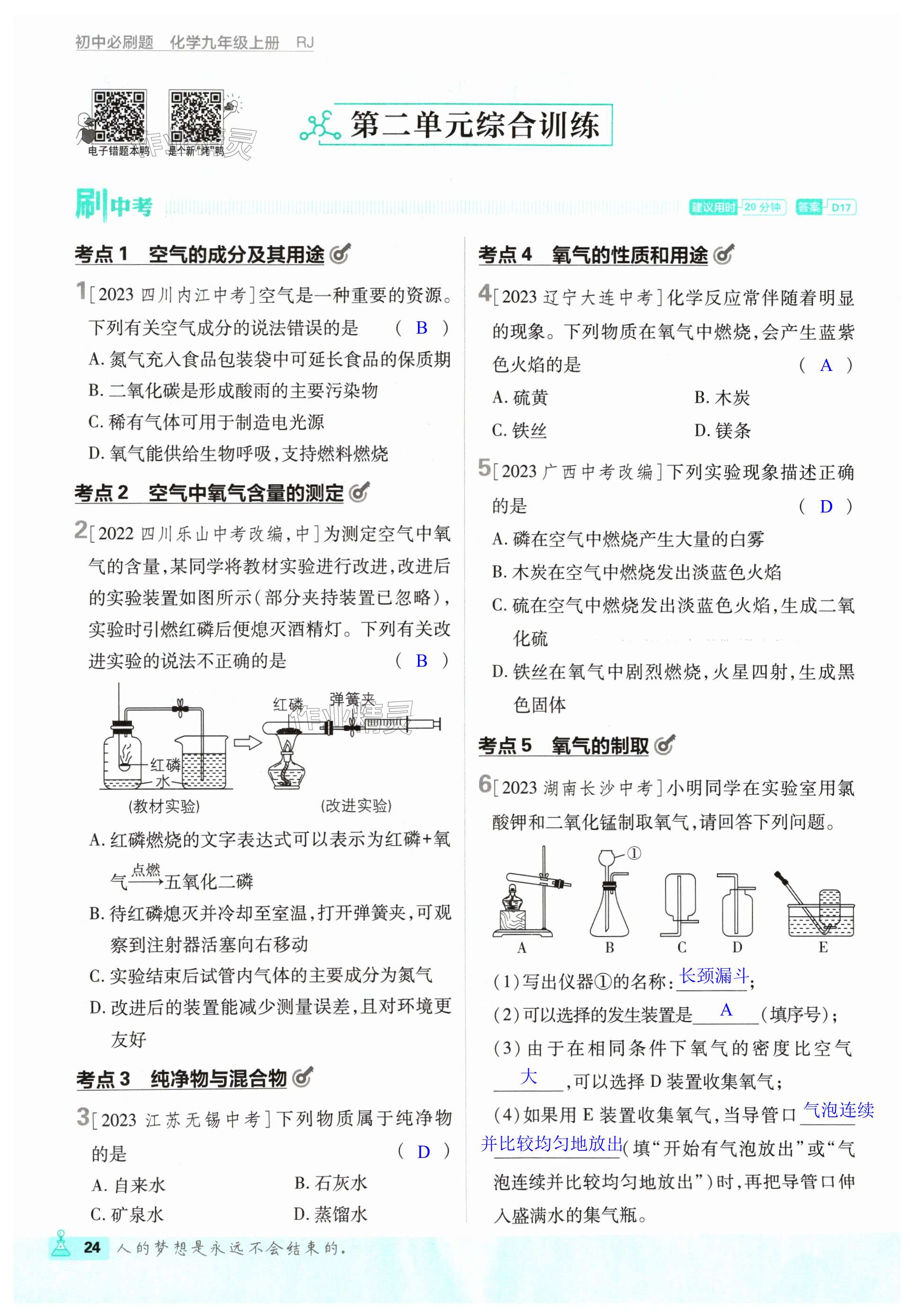 注:目前有些书本章节名称可能整理的还不是很完善,但都是按照顺序排列的,请同学们按照顺序仔细查找。练习册 2024年初中必刷题九年级化学上册人教版 答案主要是用来给同学们做完题方便对答案用的,请勿直接抄袭。