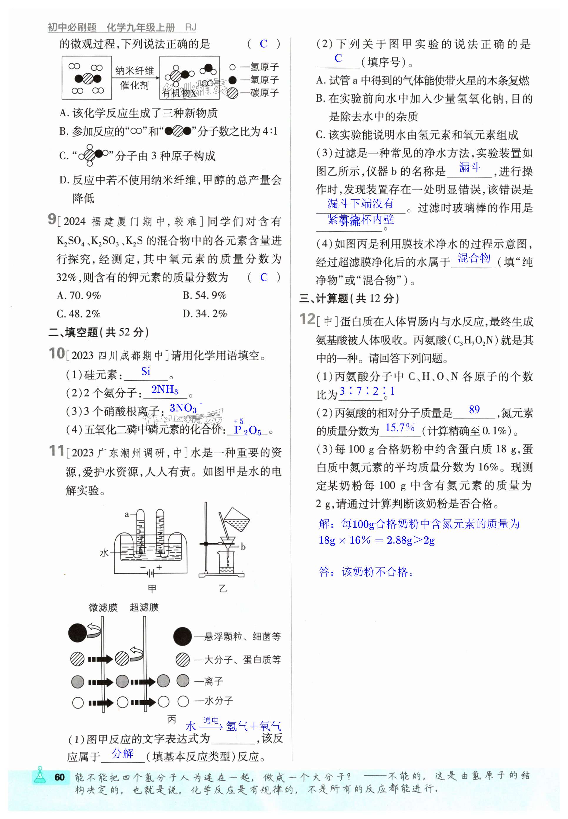 注:目前有些书本章节名称可能整理的还不是很完善,但都是按照顺序排列的,请同学们按照顺序仔细查找。练习册 2024年初中必刷题九年级化学上册人教版 答案主要是用来给同学们做完题方便对答案用的,请勿直接抄袭。