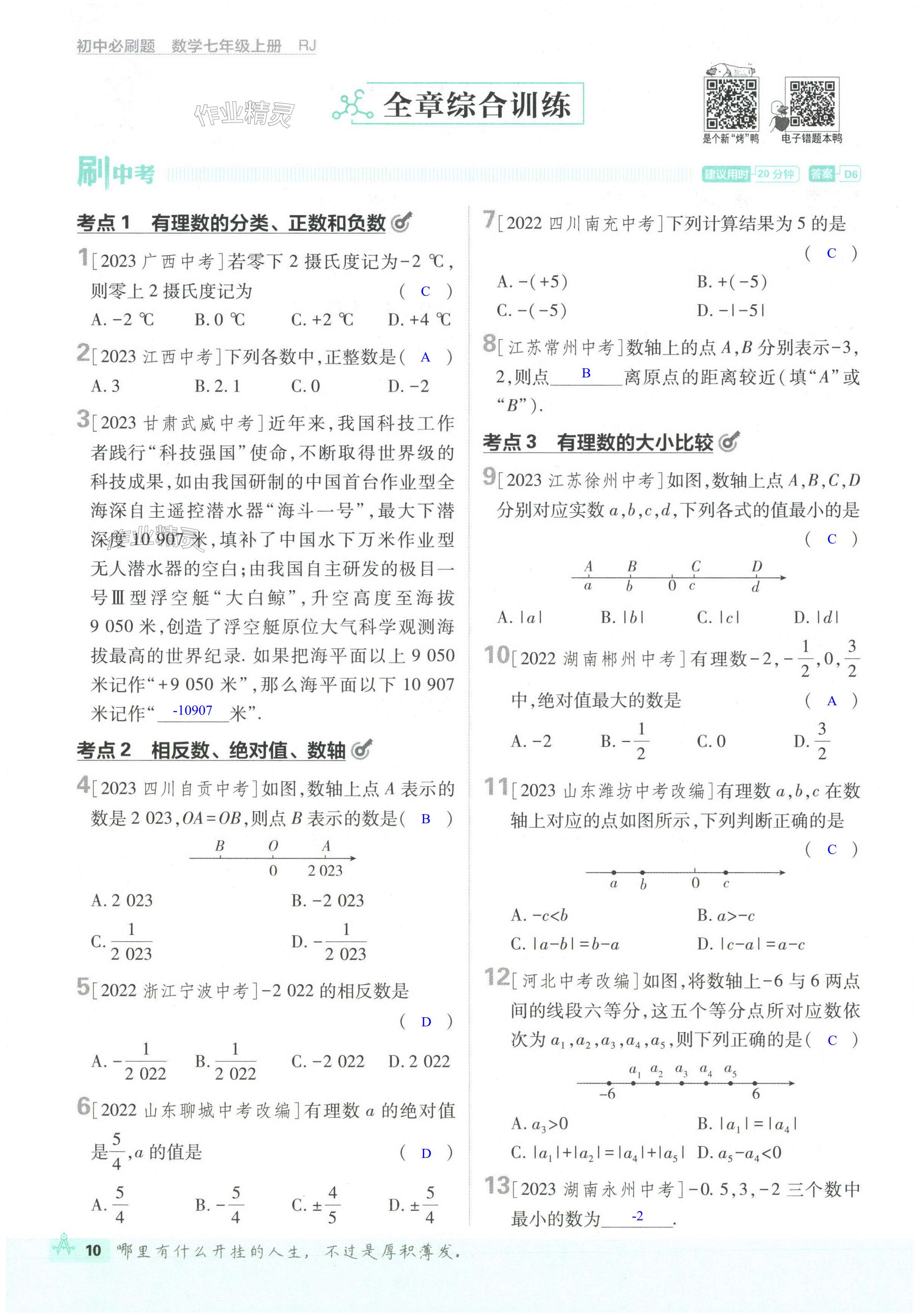 注:目前有些书本章节名称可能整理的还不是很完善,但都是按照顺序排列的,请同学们按照顺序仔细查找。练习册 2024年初中必刷题七年级数学上册人教版 答案主要是用来给同学们做完题方便对答案用的,请勿直接抄袭。