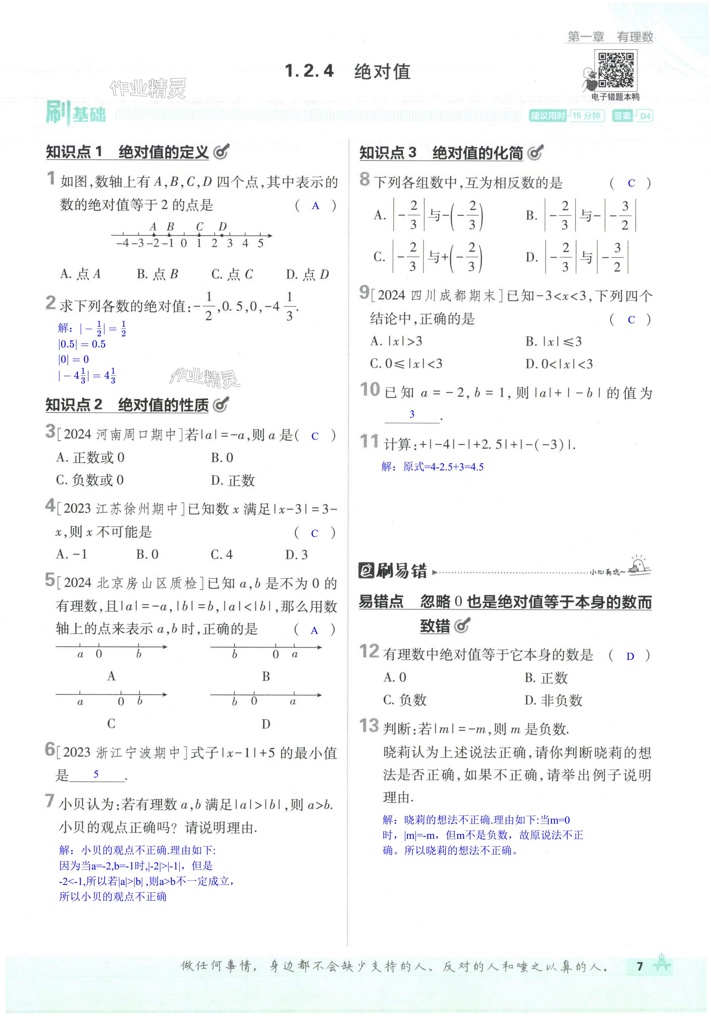 注:目前有些书本章节名称可能整理的还不是很完善,但都是按照顺序排列的,请同学们按照顺序仔细查找。练习册 2024年初中必刷题七年级数学上册人教版 答案主要是用来给同学们做完题方便对答案用的,请勿直接抄袭。
