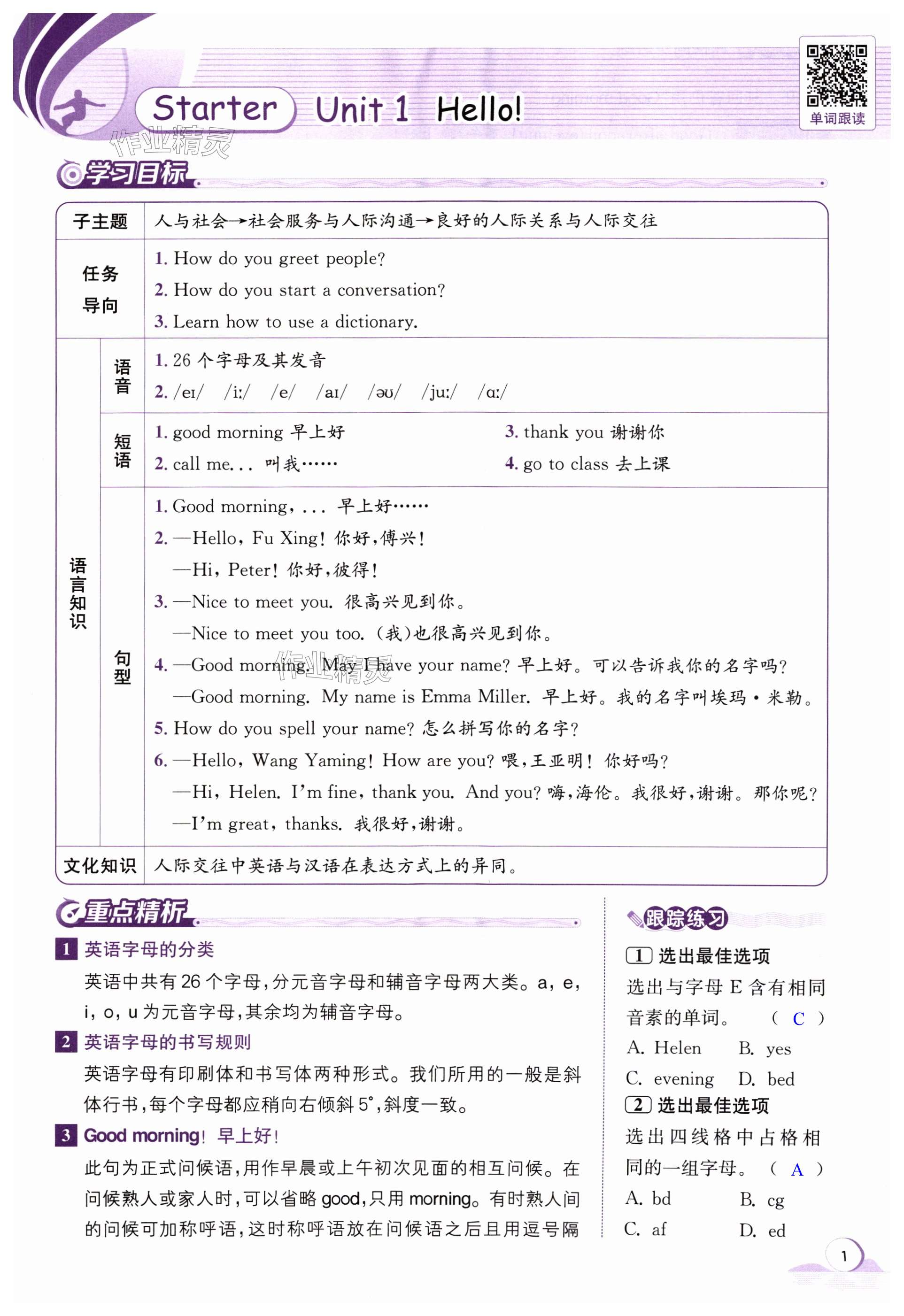 注:目前有些书本章节名称可能整理的还不是很完善,但都是按照顺序排列的,请同学们按照顺序仔细查找。练习册 2024年教与学课程同步讲练七年级英语上册人教版 答案主要是用来给同学们做完题方便对答案用的,请勿直接抄袭。