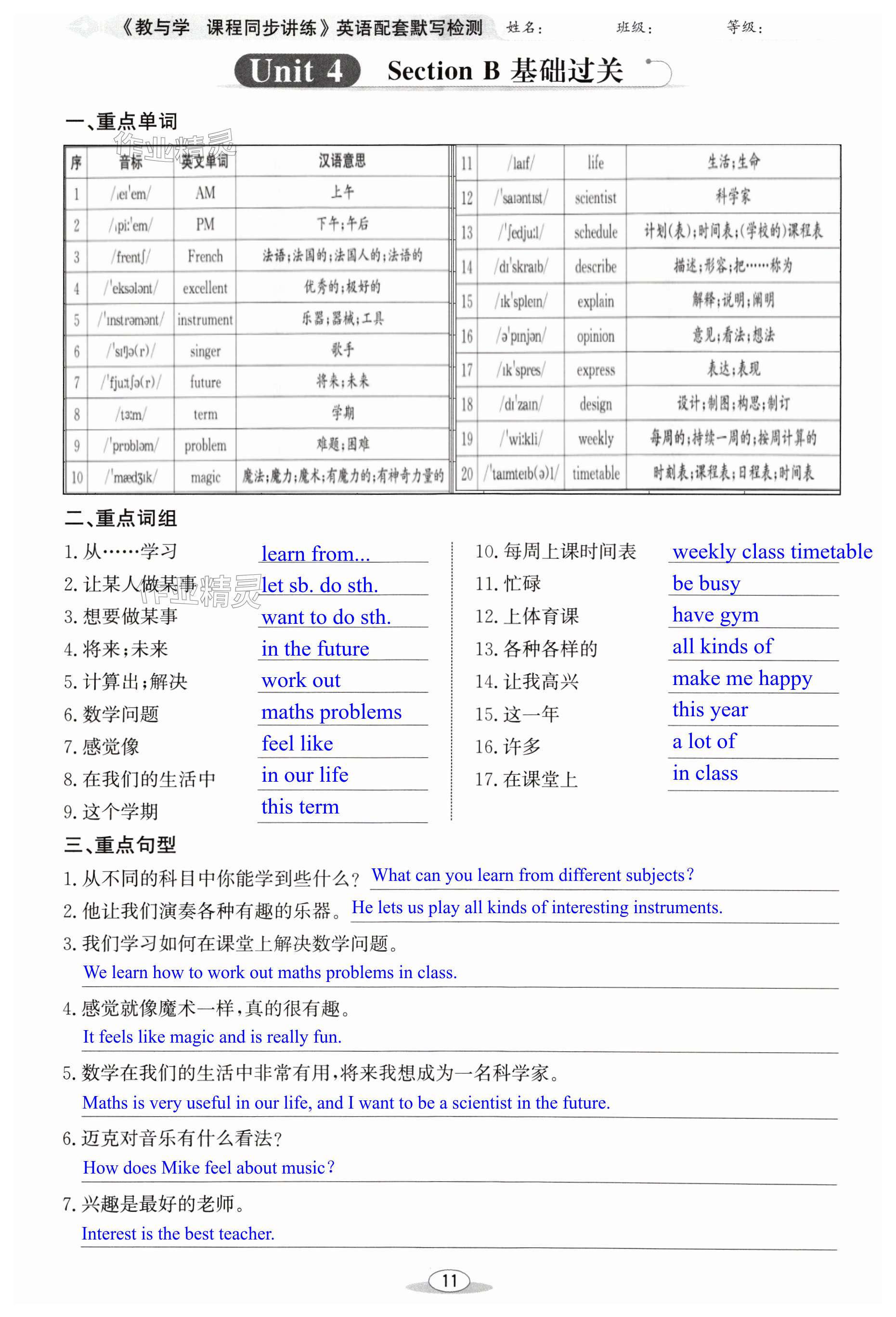 注:目前有些书本章节名称可能整理的还不是很完善,但都是按照顺序排列的,请同学们按照顺序仔细查找。练习册 2024年教与学课程同步讲练七年级英语上册人教版 答案主要是用来给同学们做完题方便对答案用的,请勿直接抄袭。