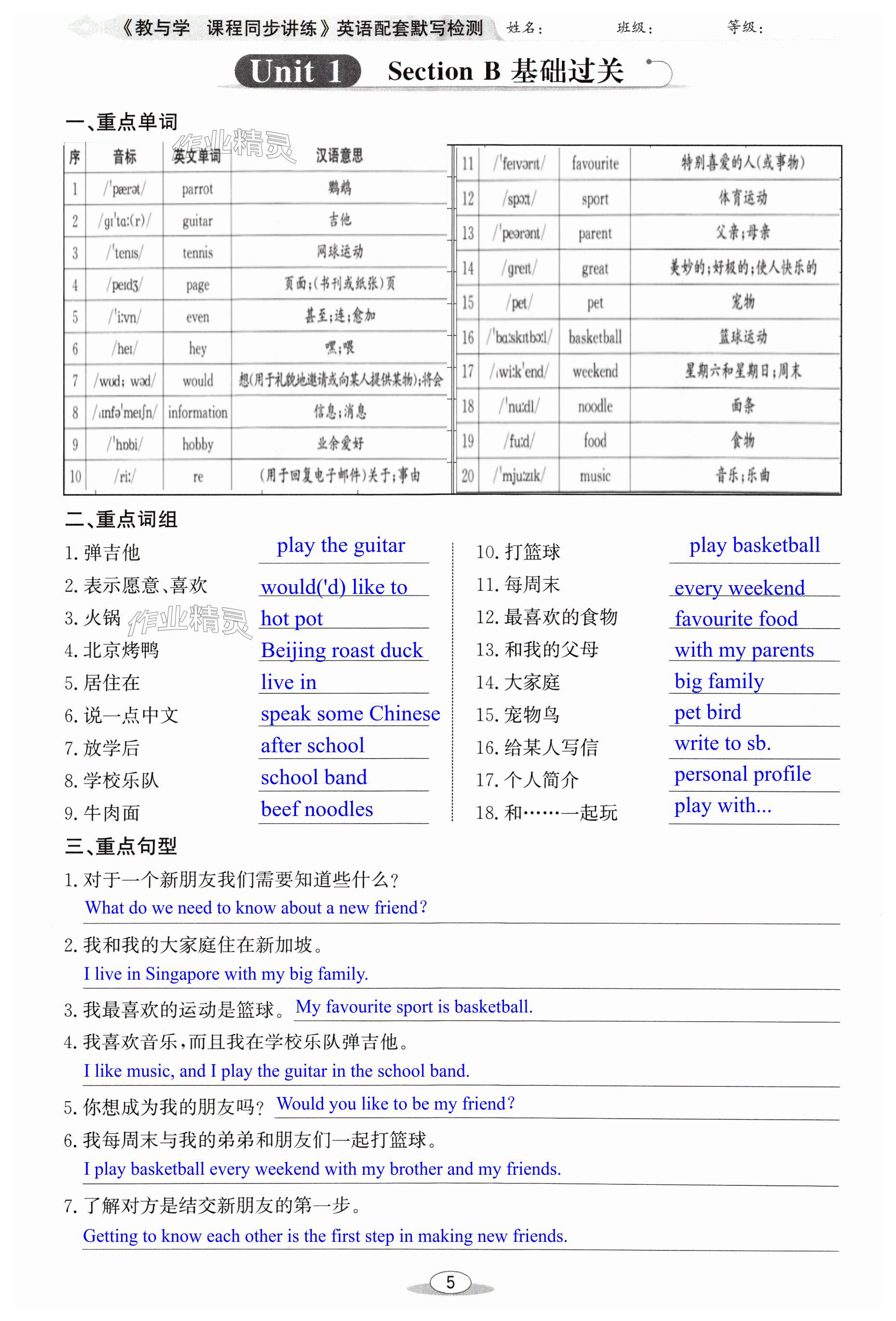 注:目前有些书本章节名称可能整理的还不是很完善,但都是按照顺序排列的,请同学们按照顺序仔细查找。练习册 2024年教与学课程同步讲练七年级英语上册人教版 答案主要是用来给同学们做完题方便对答案用的,请勿直接抄袭。