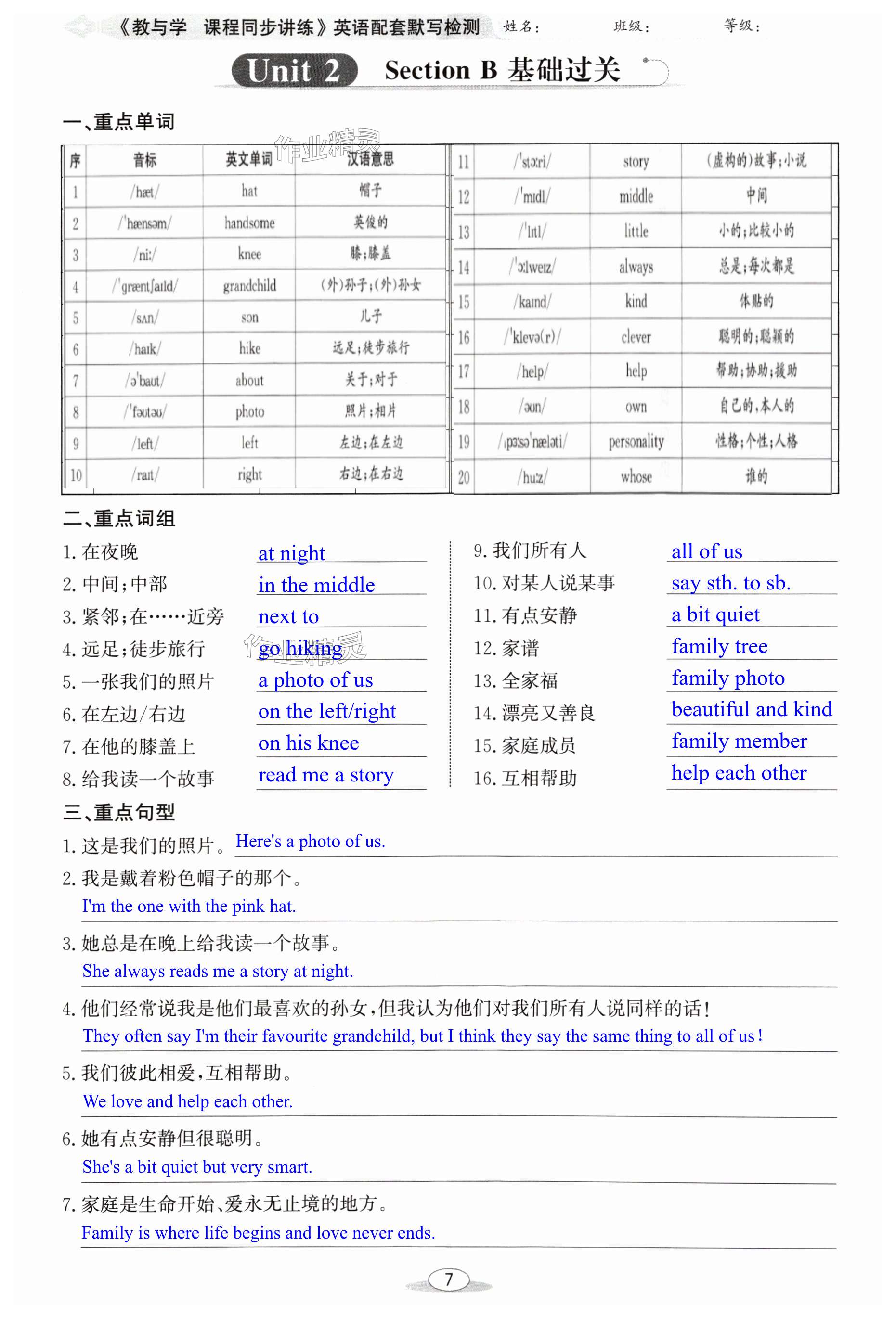 注:目前有些书本章节名称可能整理的还不是很完善,但都是按照顺序排列的,请同学们按照顺序仔细查找。练习册 2024年教与学课程同步讲练七年级英语上册人教版 答案主要是用来给同学们做完题方便对答案用的,请勿直接抄袭。