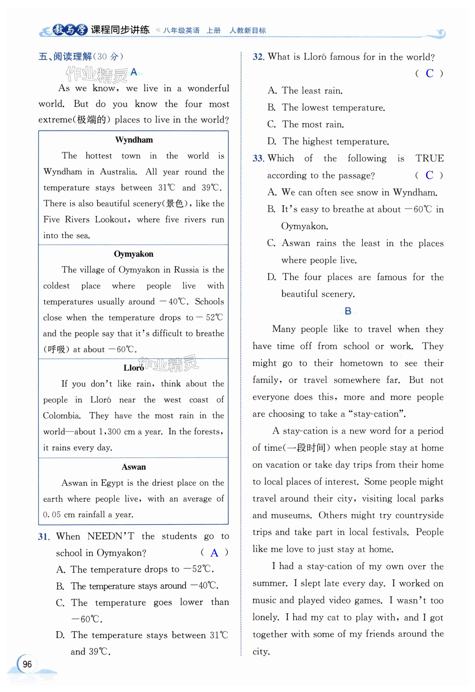 注:目前有些书本章节名称可能整理的还不是很完善,但都是按照顺序排列的,请同学们按照顺序仔细查找。练习册 2024年教与学课程同步讲练八年级英语上册人教版 答案主要是用来给同学们做完题方便对答案用的,请勿直接抄袭。