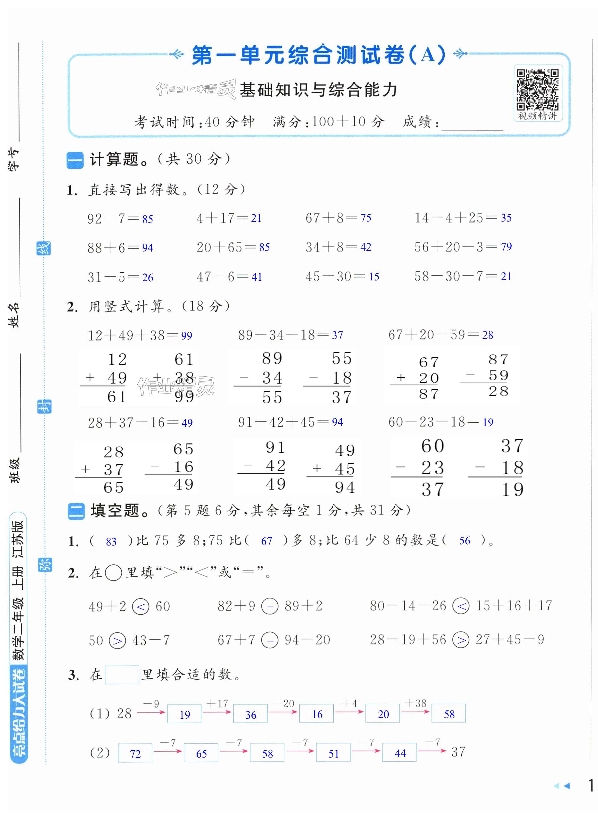 注:目前有些书本章节名称可能整理的还不是很完善,但都是按照顺序排列的,请同学们按照顺序仔细查找。练习册 2024年亮点给力大试卷二年级数学上册苏教版 答案主要是用来给同学们做完题方便对答案用的,请勿直接抄袭。