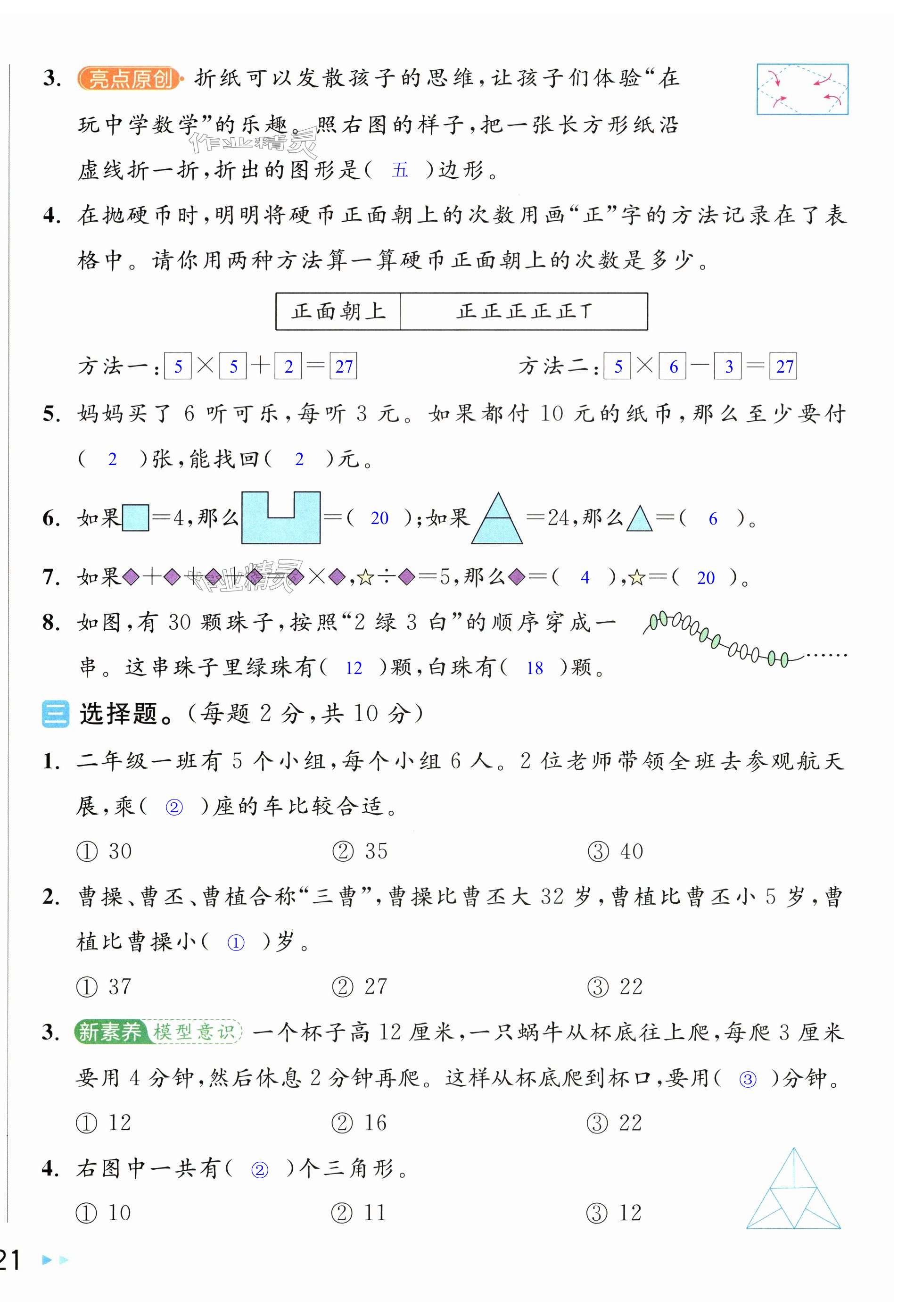 注:目前有些书本章节名称可能整理的还不是很完善,但都是按照顺序排列的,请同学们按照顺序仔细查找。练习册 2024年亮点给力大试卷二年级数学上册苏教版 答案主要是用来给同学们做完题方便对答案用的,请勿直接抄袭。