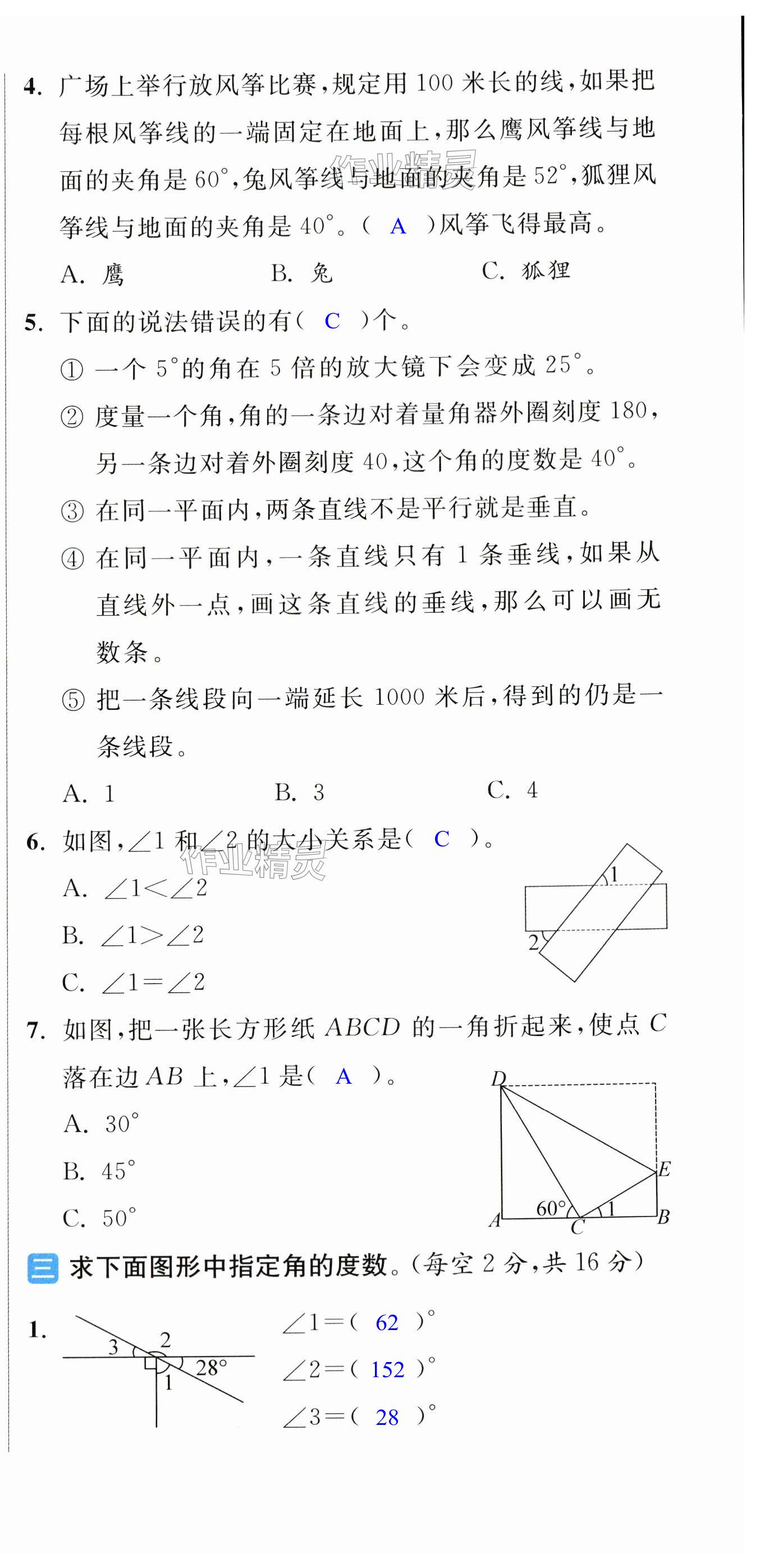 注:目前有些书本章节名称可能整理的还不是很完善,但都是按照顺序排列的,请同学们按照顺序仔细查找。练习册 2024年亮点给力大试卷四年级数学上册苏教版 答案主要是用来给同学们做完题方便对答案用的,请勿直接抄袭。
