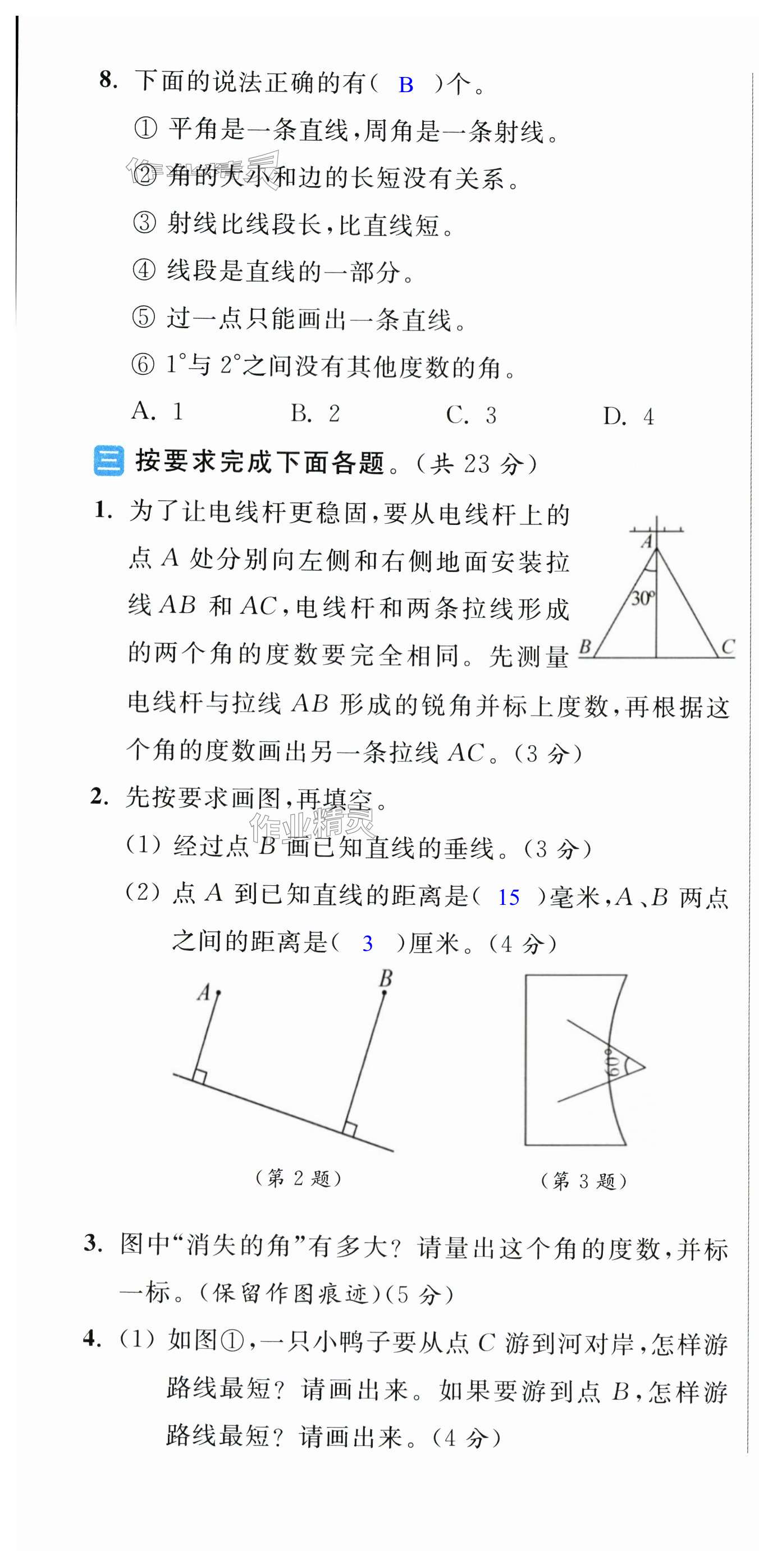 注:目前有些书本章节名称可能整理的还不是很完善,但都是按照顺序排列的,请同学们按照顺序仔细查找。练习册 2024年亮点给力大试卷四年级数学上册苏教版 答案主要是用来给同学们做完题方便对答案用的,请勿直接抄袭。