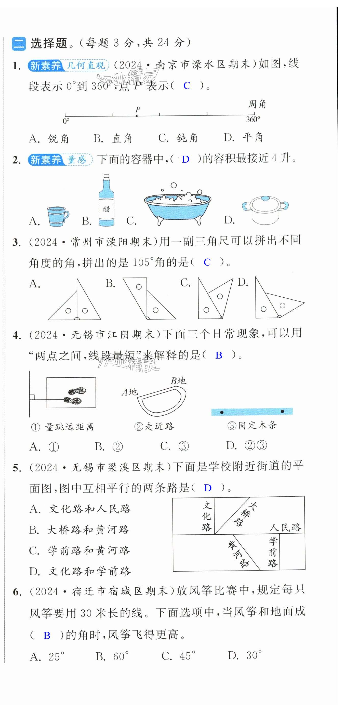 注:目前有些书本章节名称可能整理的还不是很完善,但都是按照顺序排列的,请同学们按照顺序仔细查找。练习册 2024年亮点给力大试卷四年级数学上册苏教版 答案主要是用来给同学们做完题方便对答案用的,请勿直接抄袭。