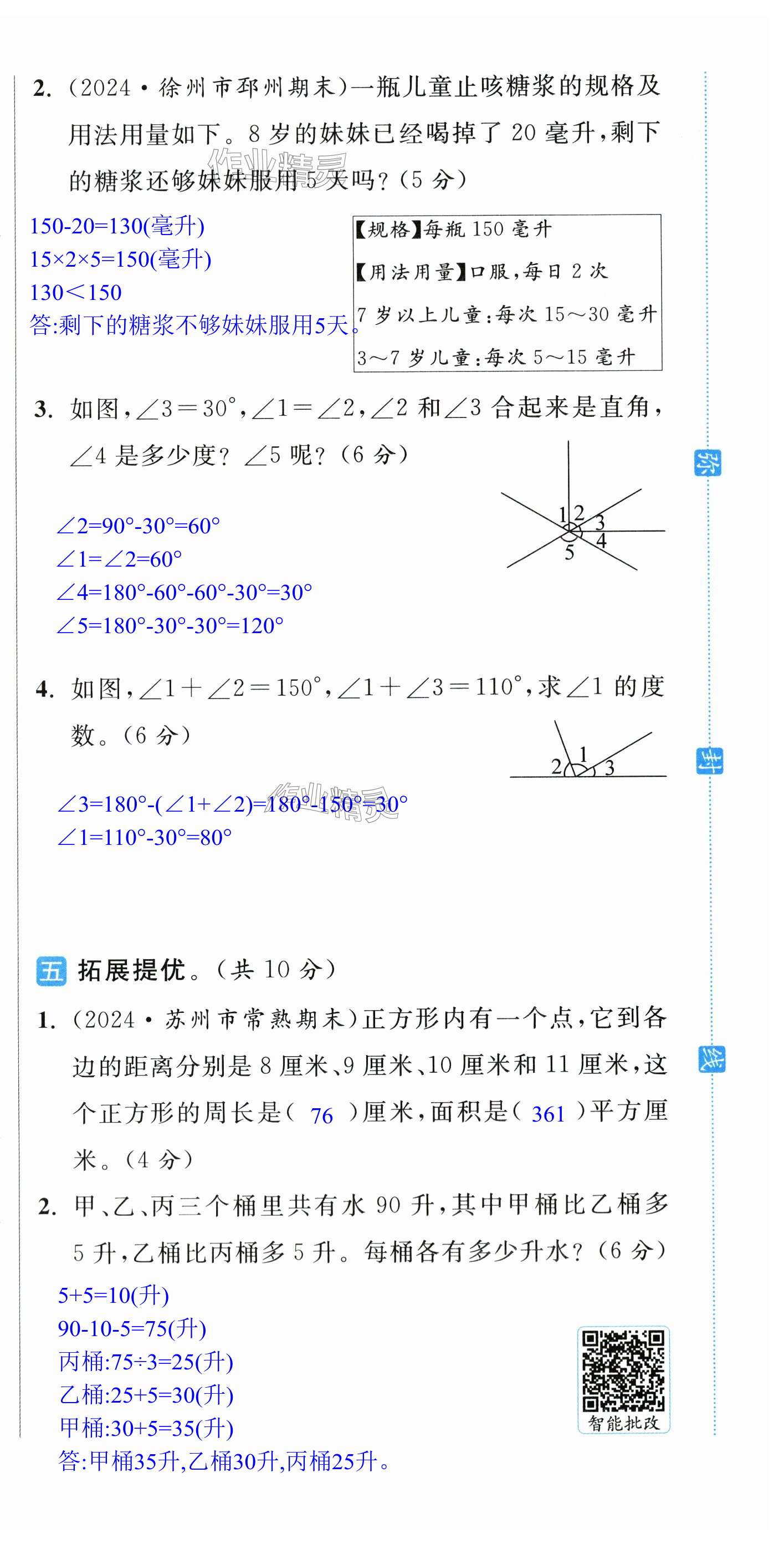 注:目前有些书本章节名称可能整理的还不是很完善,但都是按照顺序排列的,请同学们按照顺序仔细查找。练习册 2024年亮点给力大试卷四年级数学上册苏教版 答案主要是用来给同学们做完题方便对答案用的,请勿直接抄袭。