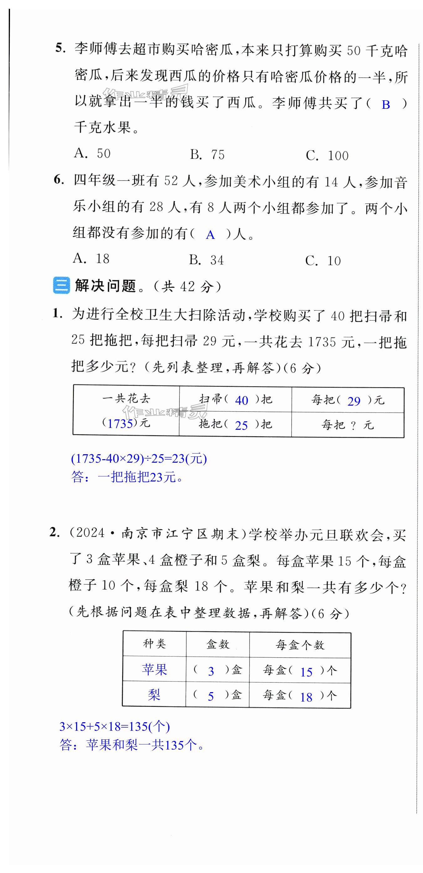 注:目前有些书本章节名称可能整理的还不是很完善,但都是按照顺序排列的,请同学们按照顺序仔细查找。练习册 2024年亮点给力大试卷四年级数学上册苏教版 答案主要是用来给同学们做完题方便对答案用的,请勿直接抄袭。