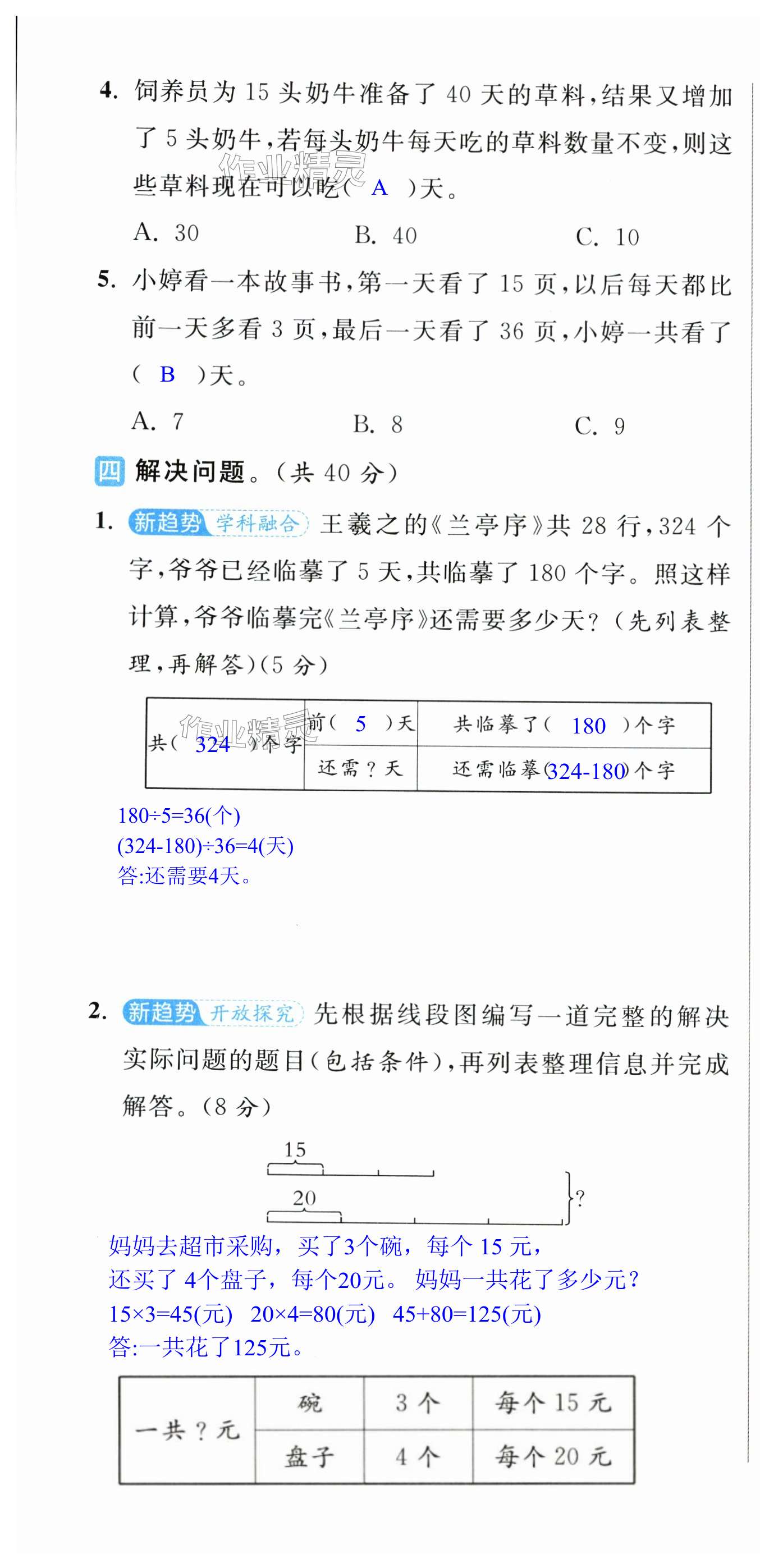 注:目前有些书本章节名称可能整理的还不是很完善,但都是按照顺序排列的,请同学们按照顺序仔细查找。练习册 2024年亮点给力大试卷四年级数学上册苏教版 答案主要是用来给同学们做完题方便对答案用的,请勿直接抄袭。