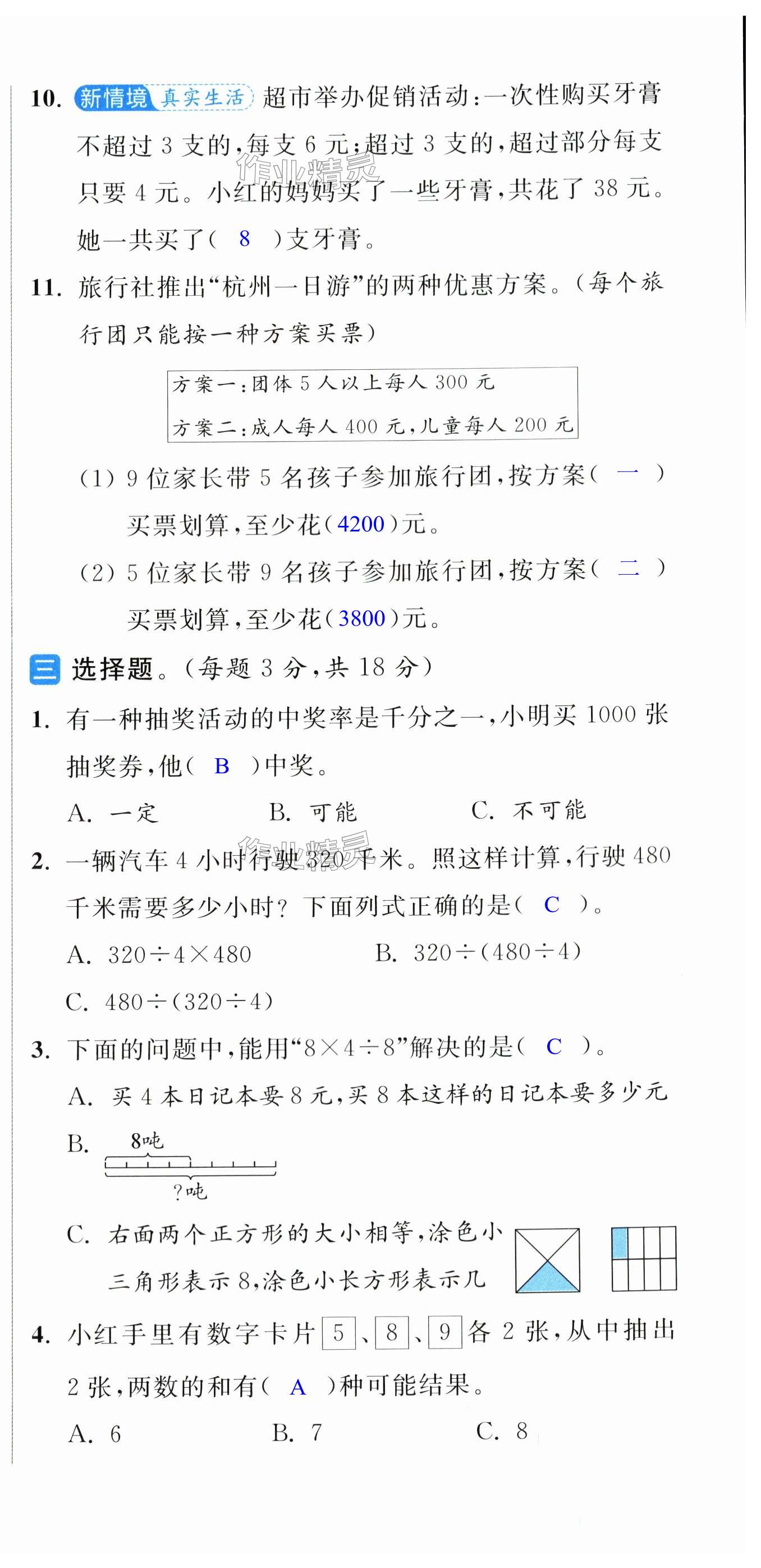 注:目前有些书本章节名称可能整理的还不是很完善,但都是按照顺序排列的,请同学们按照顺序仔细查找。练习册 2024年亮点给力大试卷四年级数学上册苏教版 答案主要是用来给同学们做完题方便对答案用的,请勿直接抄袭。