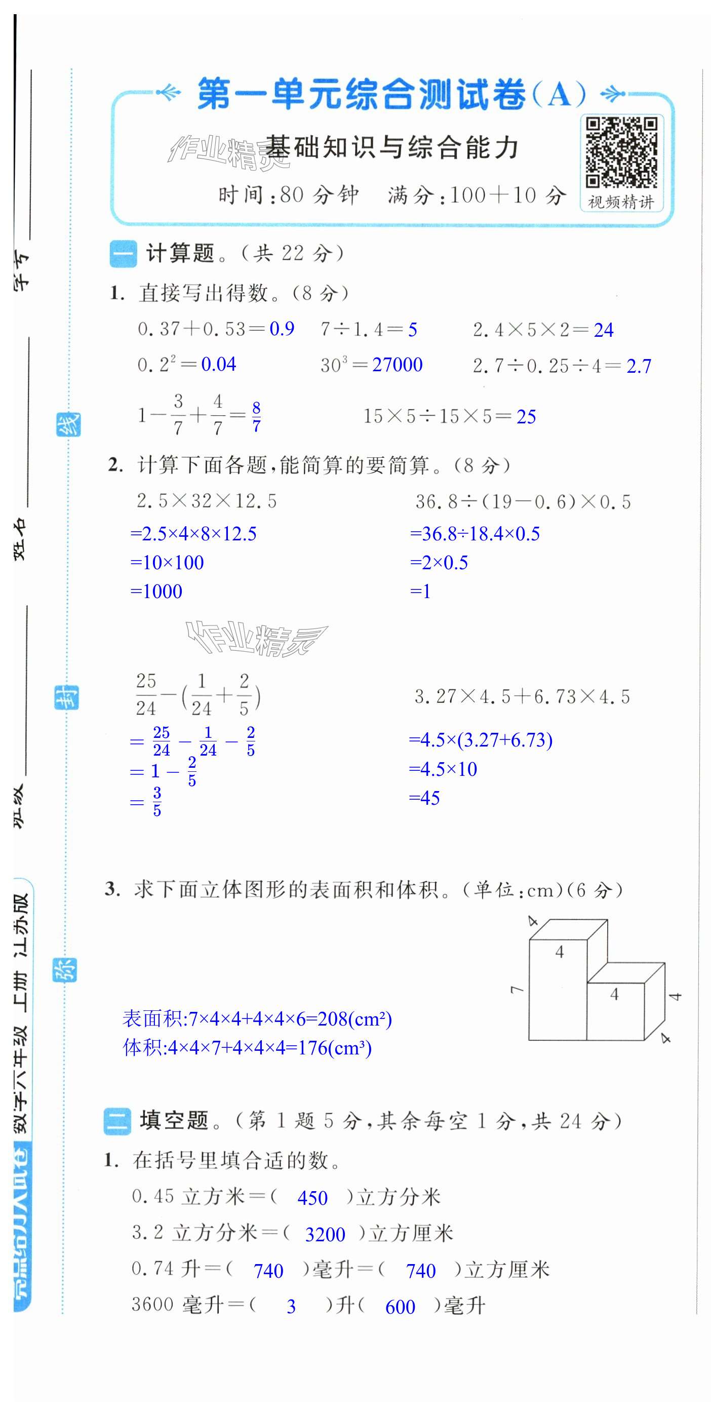 注:目前有些书本章节名称可能整理的还不是很完善,但都是按照顺序排列的,请同学们按照顺序仔细查找。练习册 2024年亮点给力大试卷六年级数学上册苏教版 答案主要是用来给同学们做完题方便对答案用的,请勿直接抄袭。