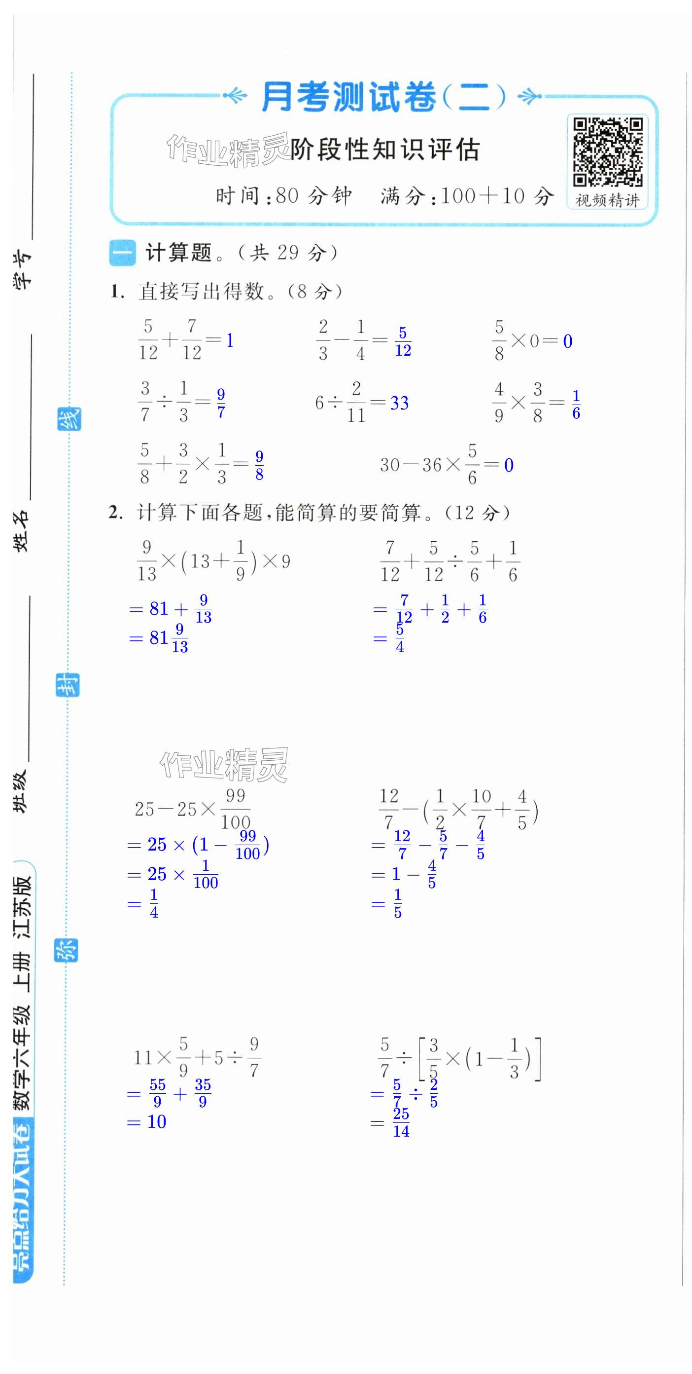 注:目前有些书本章节名称可能整理的还不是很完善,但都是按照顺序排列的,请同学们按照顺序仔细查找。练习册 2024年亮点给力大试卷六年级数学上册苏教版 答案主要是用来给同学们做完题方便对答案用的,请勿直接抄袭。