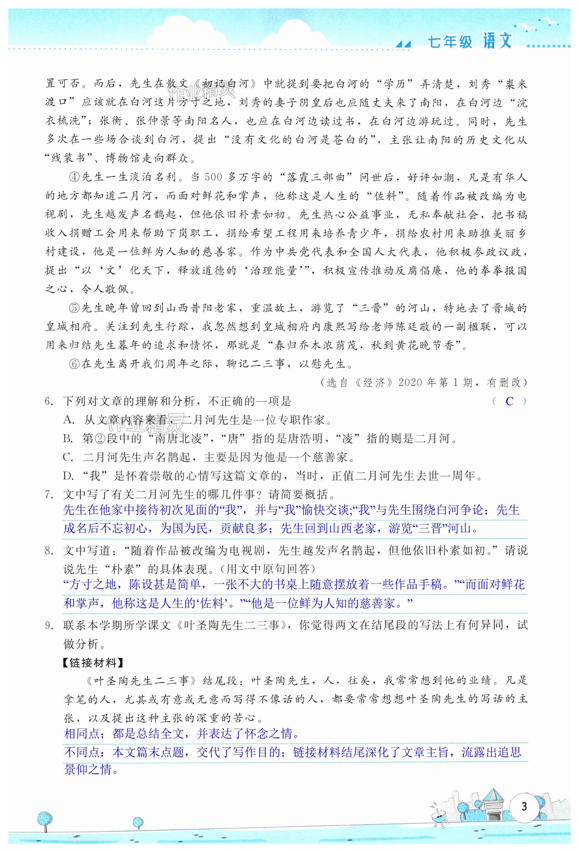 注:目前有些书本章节名称可能整理的还不是很完善,但都是按照顺序排列的,请同学们按照顺序仔细查找。练习册 2024年暑假活动实践与思考七年级文综人教版 答案主要是用来给同学们做完题方便对答案用的,请勿直接抄袭。