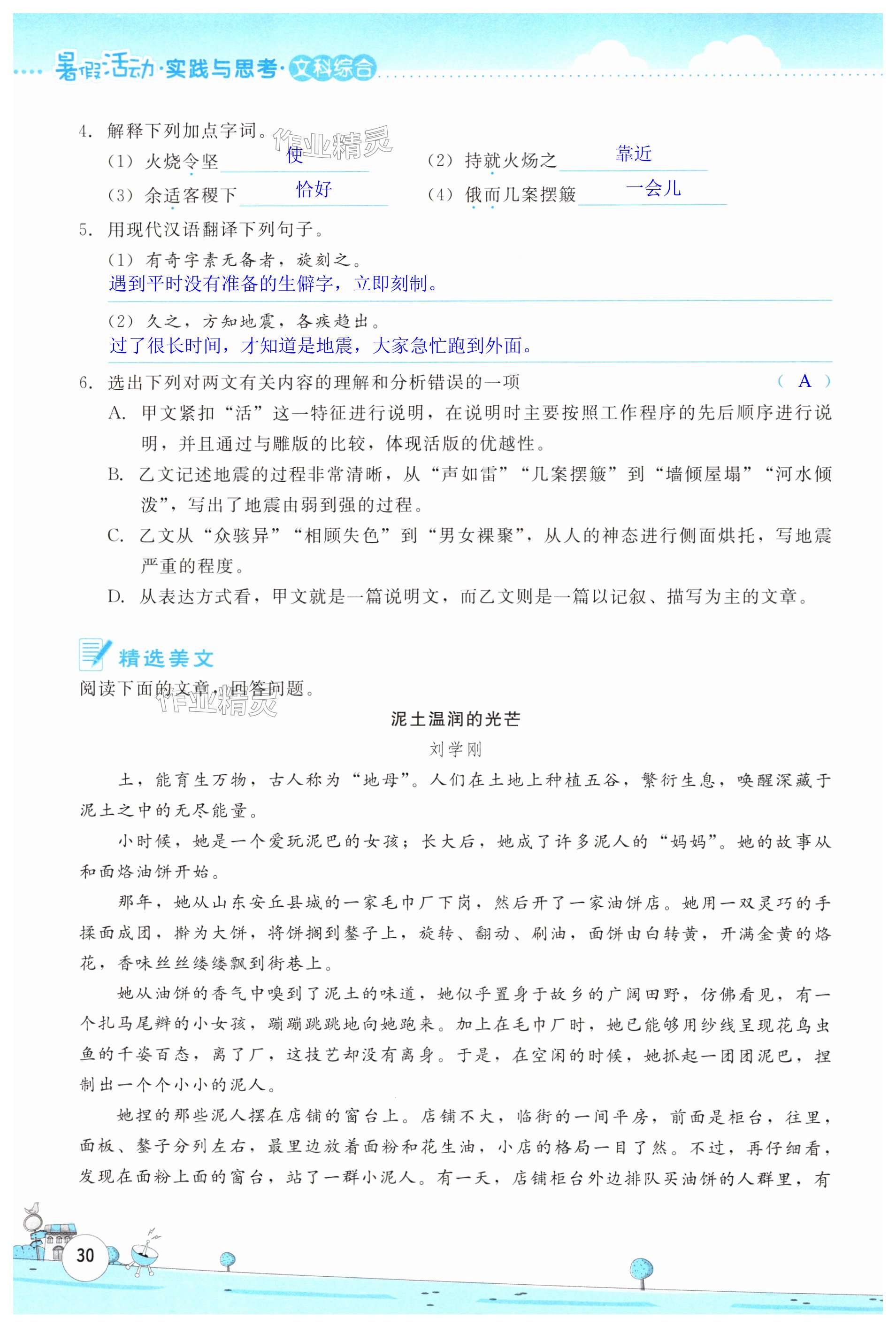 注:目前有些书本章节名称可能整理的还不是很完善,但都是按照顺序排列的,请同学们按照顺序仔细查找。练习册 2024年暑假活动实践与思考七年级文综人教版 答案主要是用来给同学们做完题方便对答案用的,请勿直接抄袭。