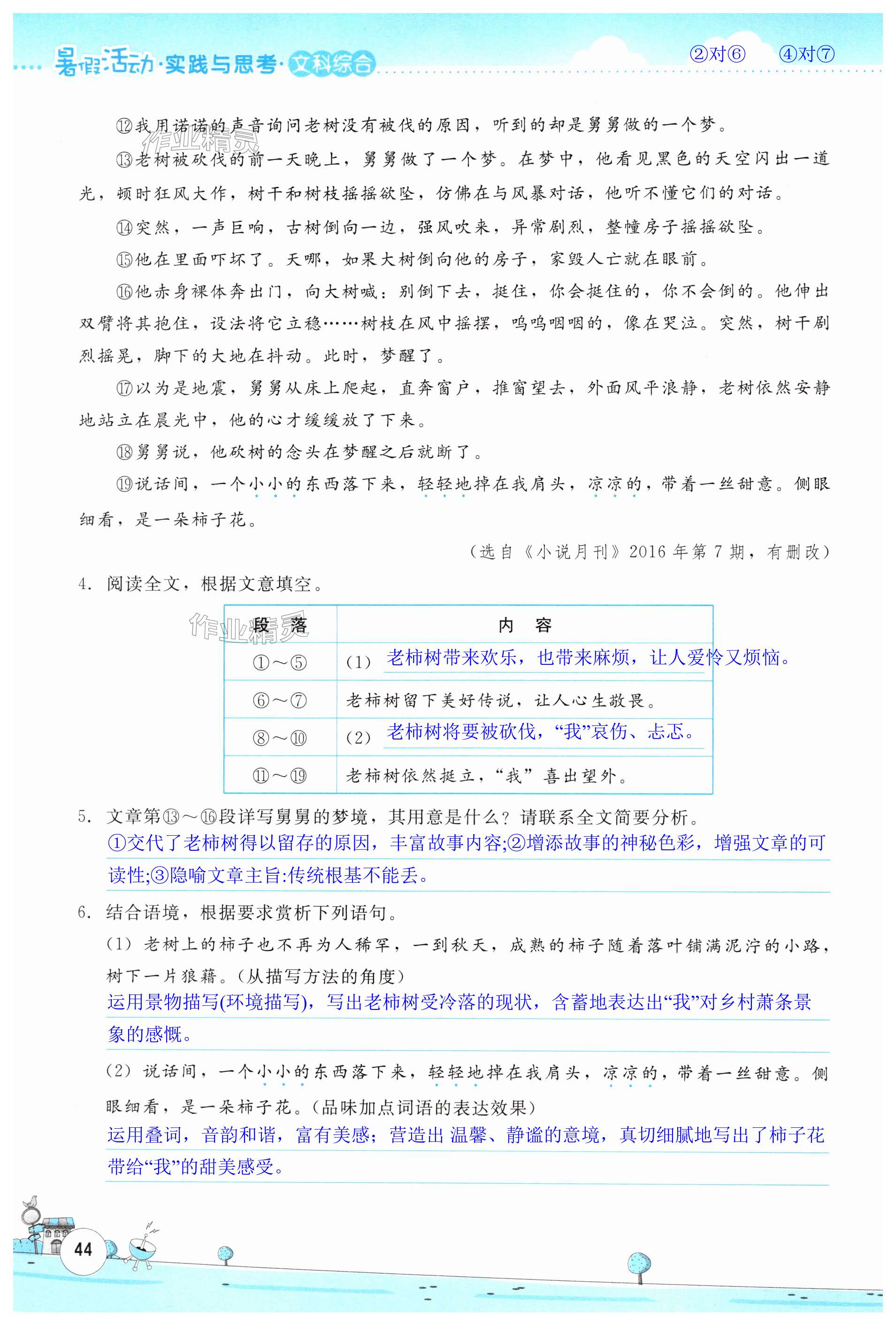 注:目前有些书本章节名称可能整理的还不是很完善,但都是按照顺序排列的,请同学们按照顺序仔细查找。练习册 2024年暑假活动实践与思考七年级文综人教版 答案主要是用来给同学们做完题方便对答案用的,请勿直接抄袭。