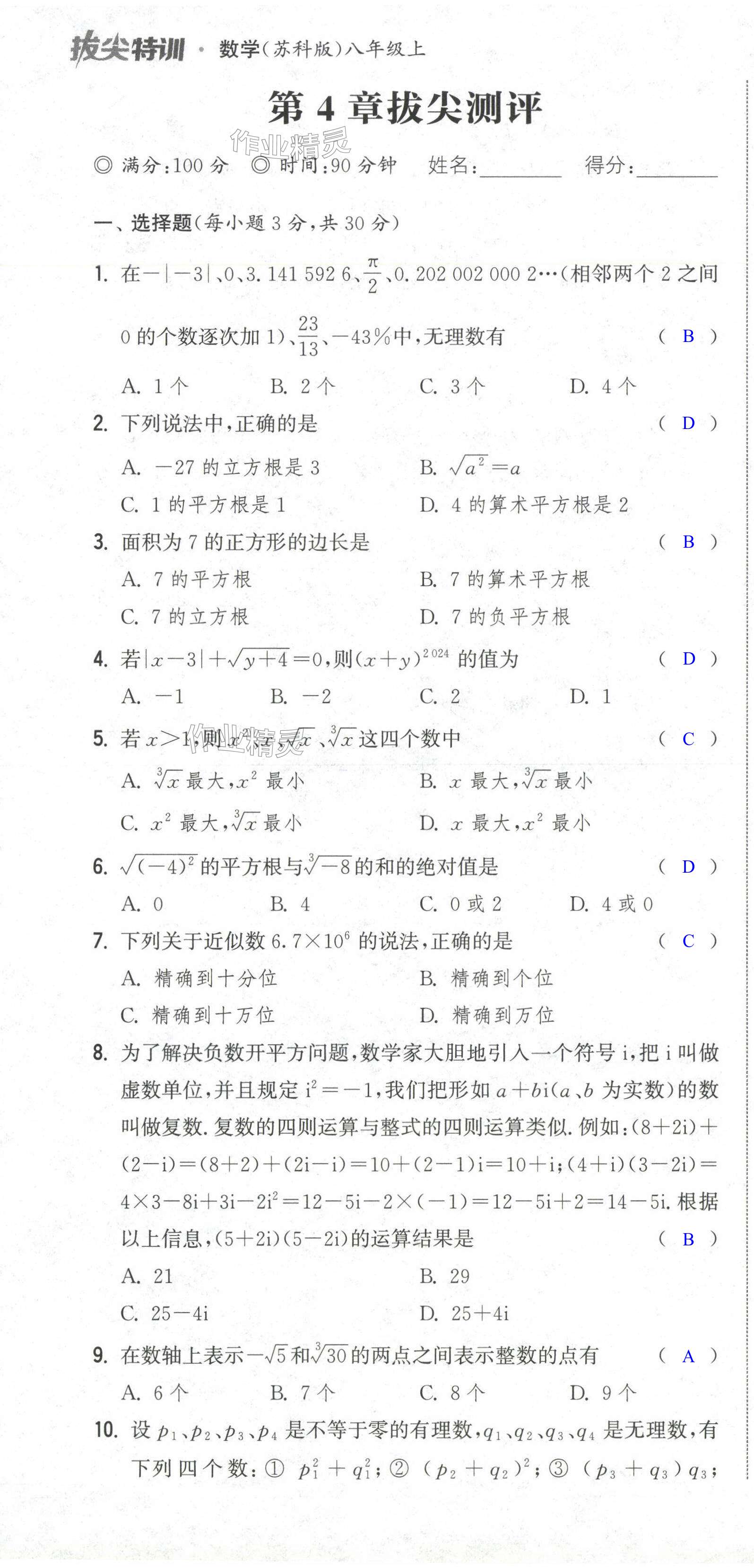 注:目前有些书本章节名称可能整理的还不是很完善,但都是按照顺序排列的,请同学们按照顺序仔细查找。练习册 2024年拔尖特训八年级数学上册苏科版 答案主要是用来给同学们做完题方便对答案用的,请勿直接抄袭。