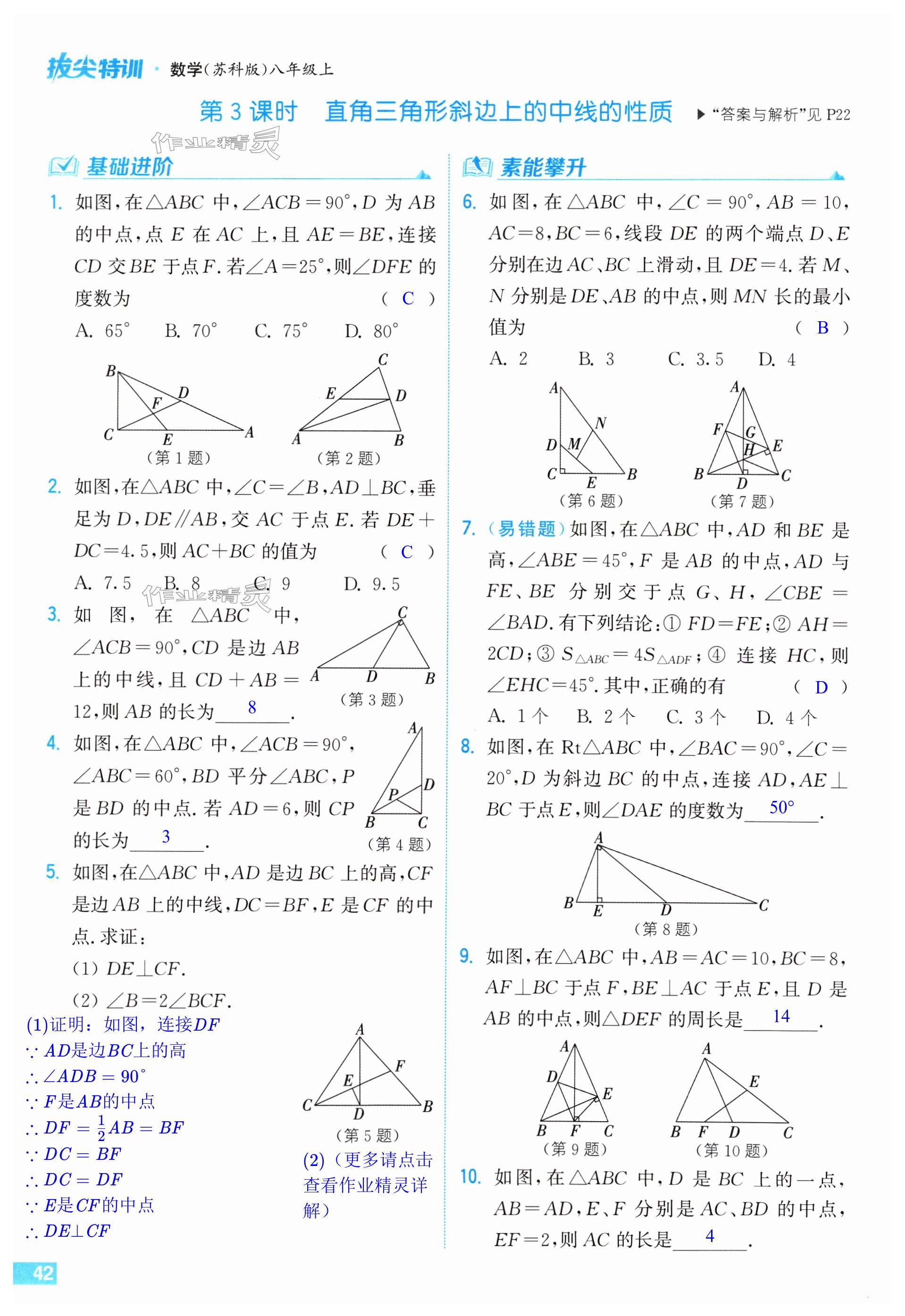 注:目前有些书本章节名称可能整理的还不是很完善,但都是按照顺序排列的,请同学们按照顺序仔细查找。练习册 2024年拔尖特训八年级数学上册苏科版 答案主要是用来给同学们做完题方便对答案用的,请勿直接抄袭。