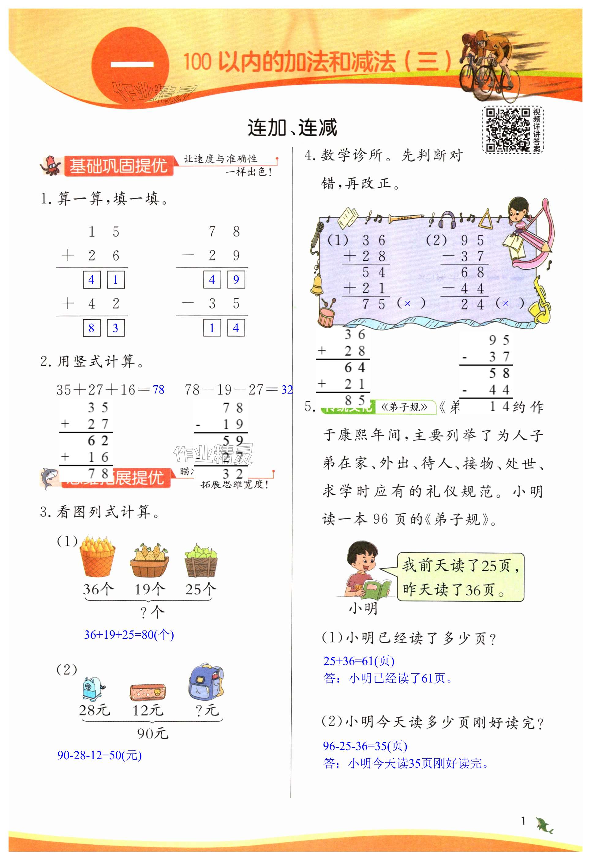 注:目前有些书本章节名称可能整理的还不是很完善,但都是按照顺序排列的,请同学们按照顺序仔细查找。练习册 2024年实验班提优训练二年级数学上册苏教版 答案主要是用来给同学们做完题方便对答案用的,请勿直接抄袭。
