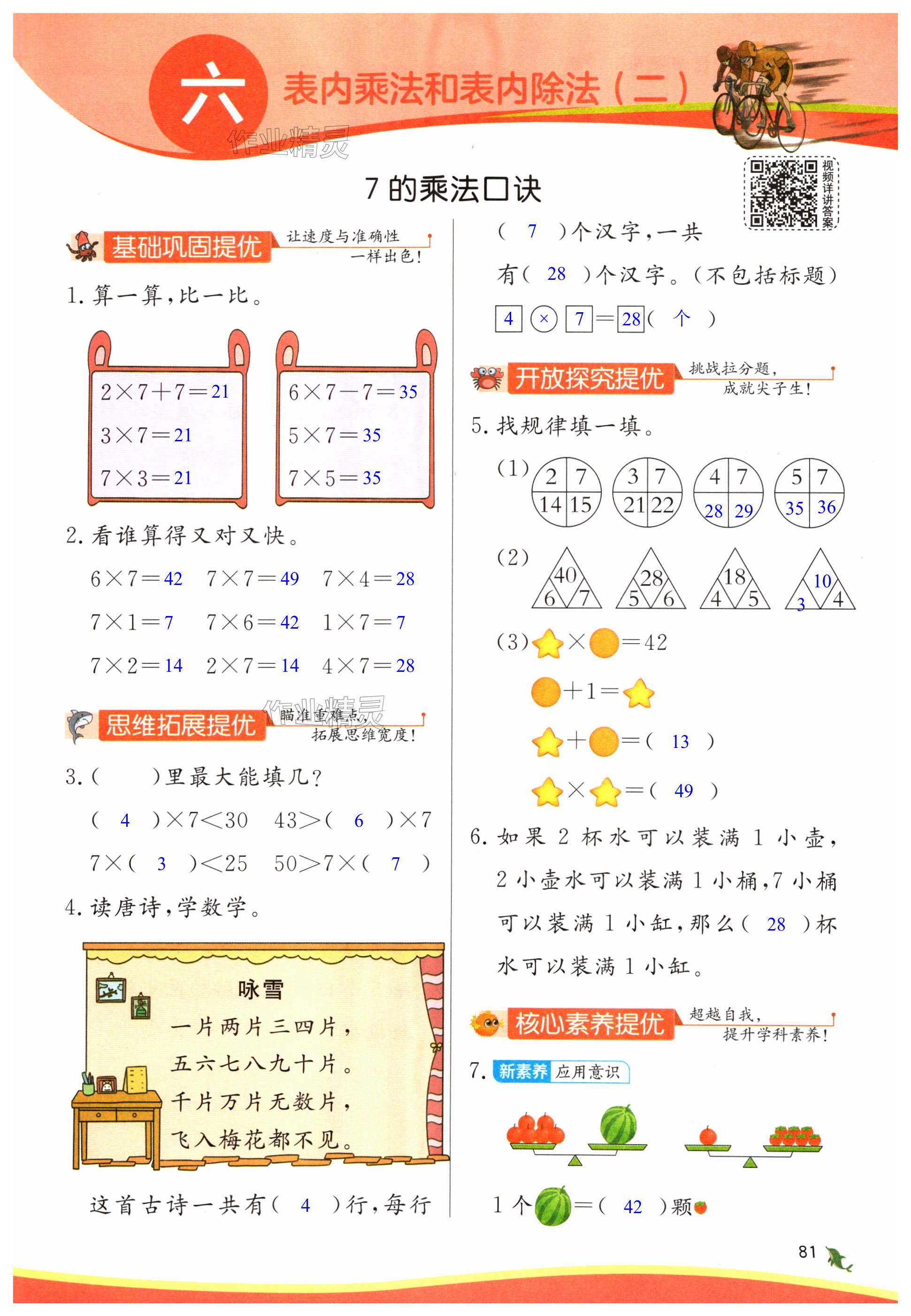 注:目前有些书本章节名称可能整理的还不是很完善,但都是按照顺序排列的,请同学们按照顺序仔细查找。练习册 2024年实验班提优训练二年级数学上册苏教版 答案主要是用来给同学们做完题方便对答案用的,请勿直接抄袭。