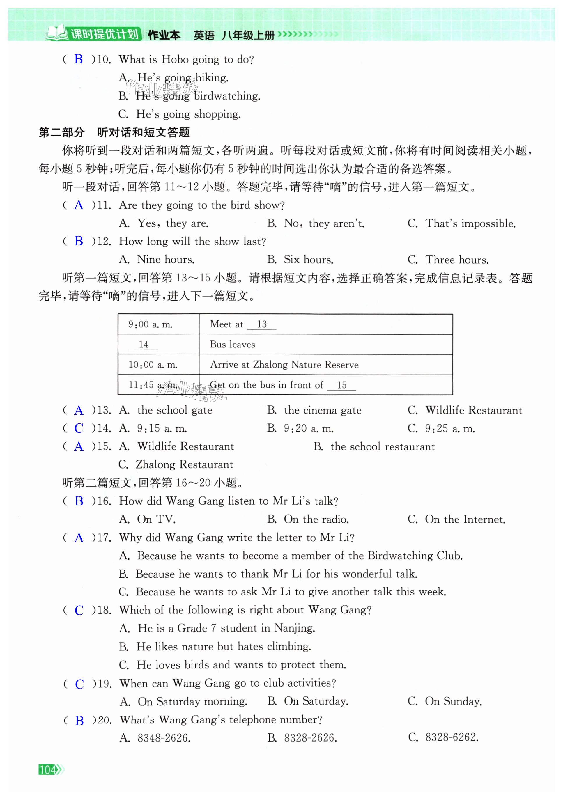 注:目前有些书本章节名称可能整理的还不是很完善,但都是按照顺序排列的,请同学们按照顺序仔细查找。练习册 2024年课时提优计划作业本八年级英语上册译林版 答案主要是用来给同学们做完题方便对答案用的,请勿直接抄袭。
