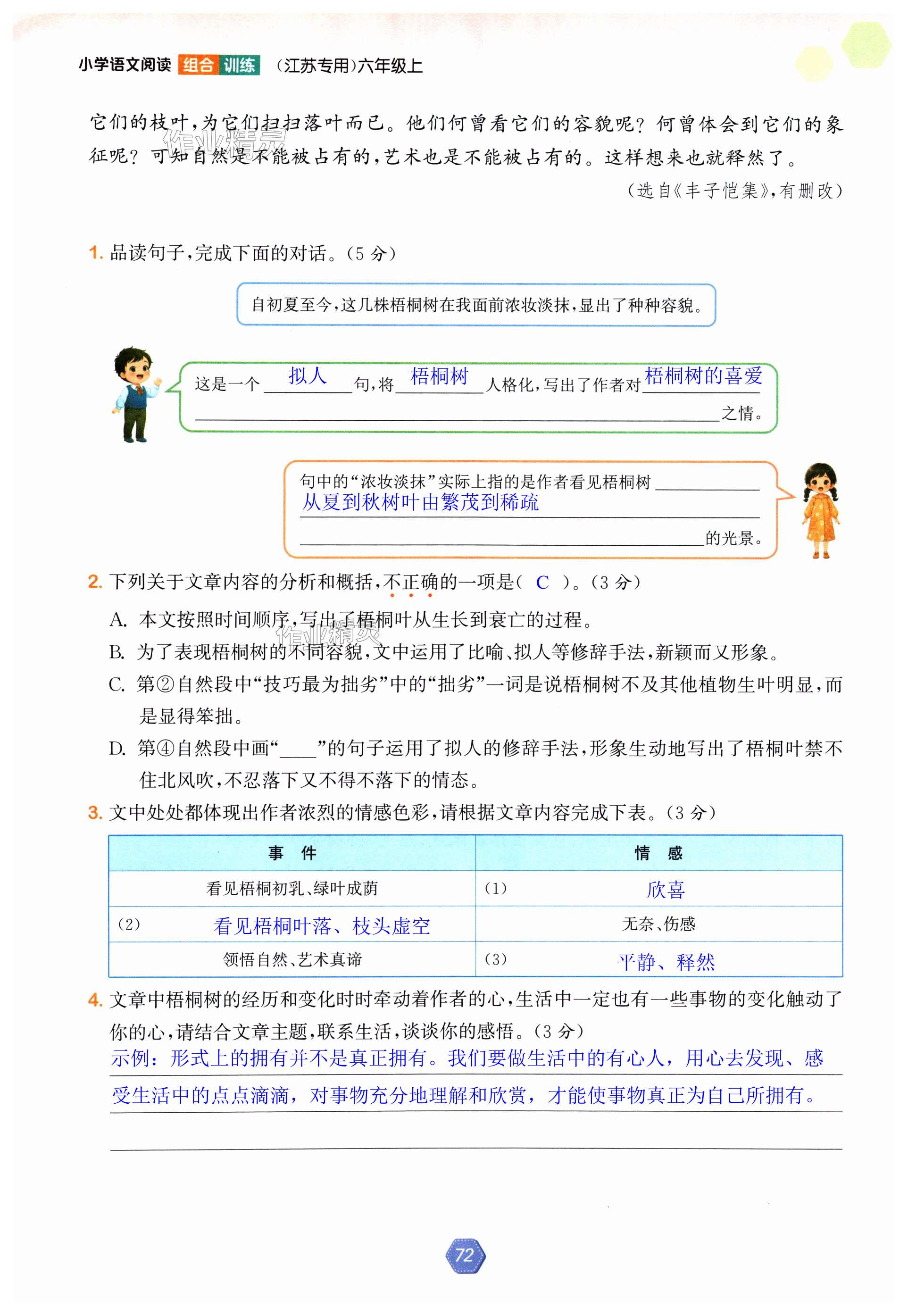 注:目前有些书本章节名称可能整理的还不是很完善,但都是按照顺序排列的,请同学们按照顺序仔细查找。练习册 2024年通城学典组合训练六年级语文上册人教版江苏专版 答案主要是用来给同学们做完题方便对答案用的,请勿直接抄袭。