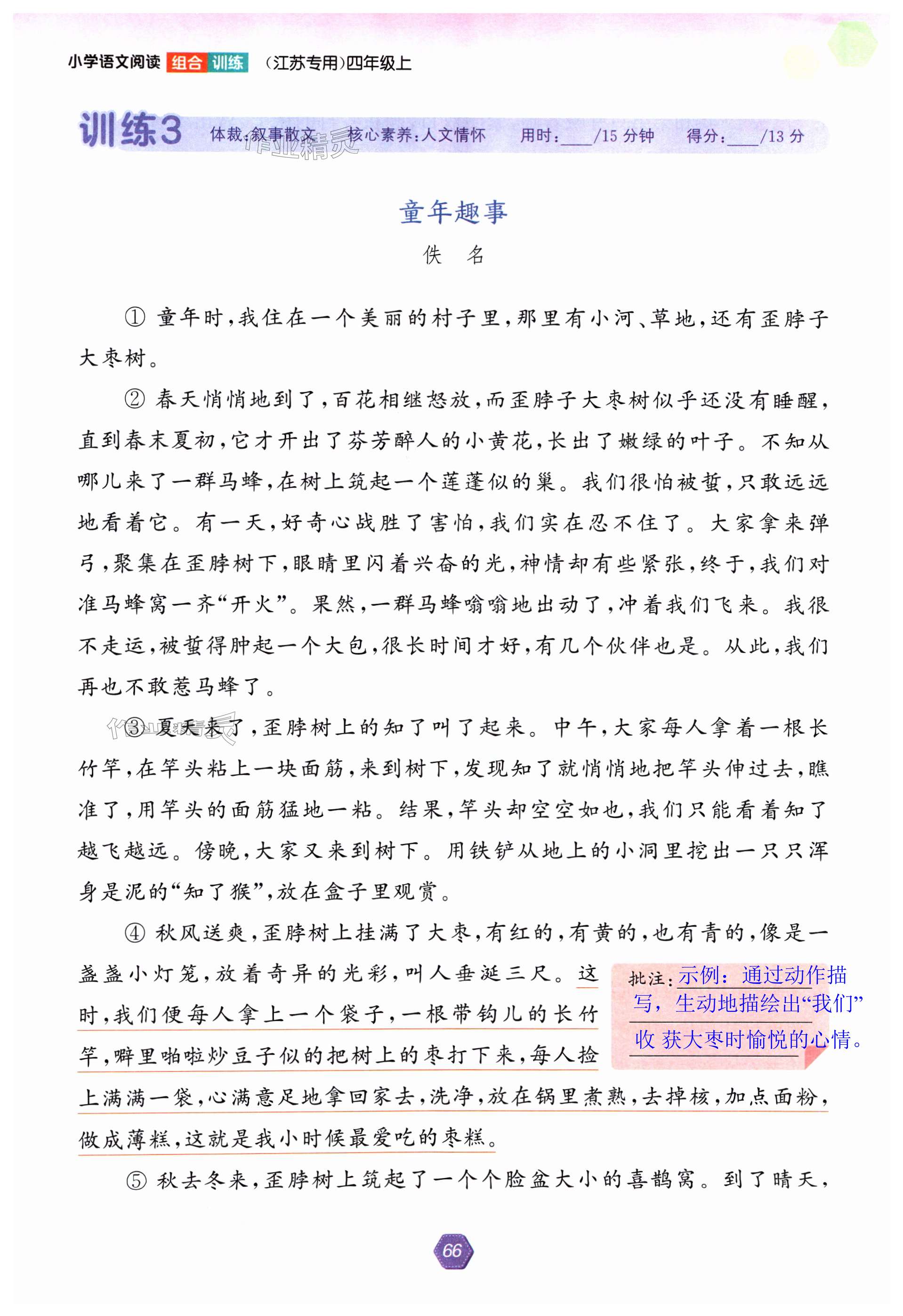 注:目前有些书本章节名称可能整理的还不是很完善,但都是按照顺序排列的,请同学们按照顺序仔细查找。练习册 2024年通城学典组合训练四年级语文上册人教版江苏专版 答案主要是用来给同学们做完题方便对答案用的,请勿直接抄袭。