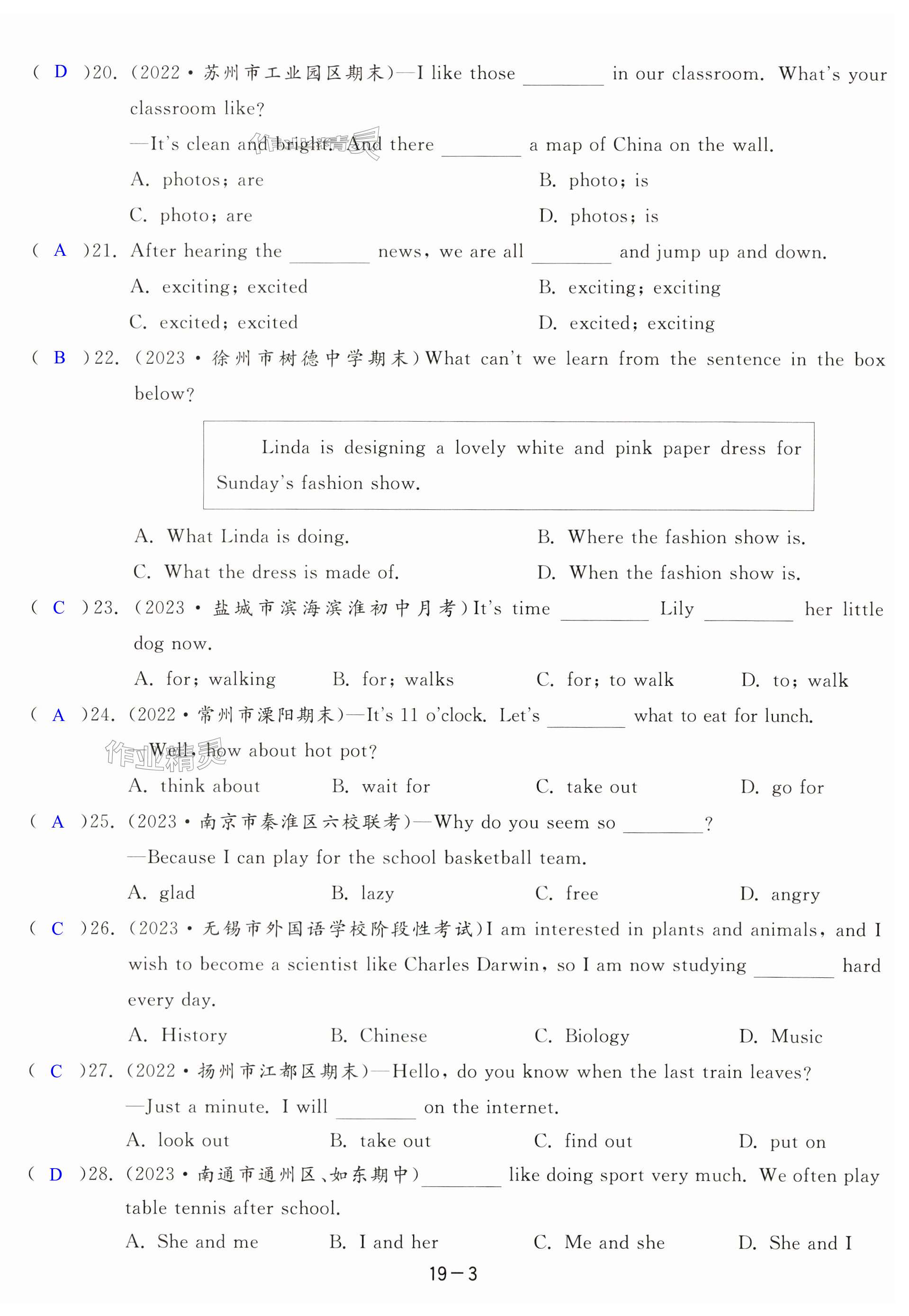 注:目前有些书本章节名称可能整理的还不是很完善,但都是按照顺序排列的,请同学们按照顺序仔细查找。练习册 2024年亮点给力大试卷七年级英语上册译林版 答案主要是用来给同学们做完题方便对答案用的,请勿直接抄袭。