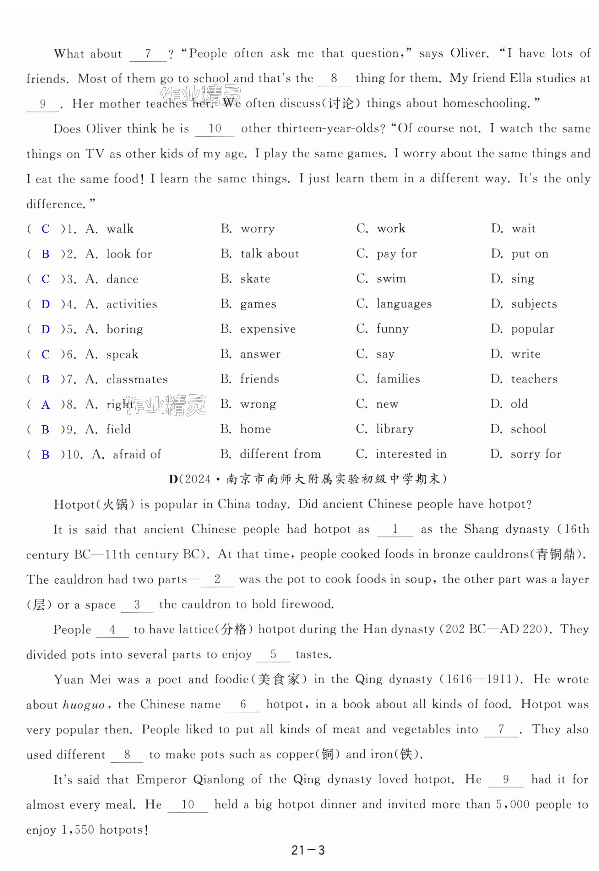 注:目前有些书本章节名称可能整理的还不是很完善,但都是按照顺序排列的,请同学们按照顺序仔细查找。练习册 2024年亮点给力大试卷七年级英语上册译林版 答案主要是用来给同学们做完题方便对答案用的,请勿直接抄袭。