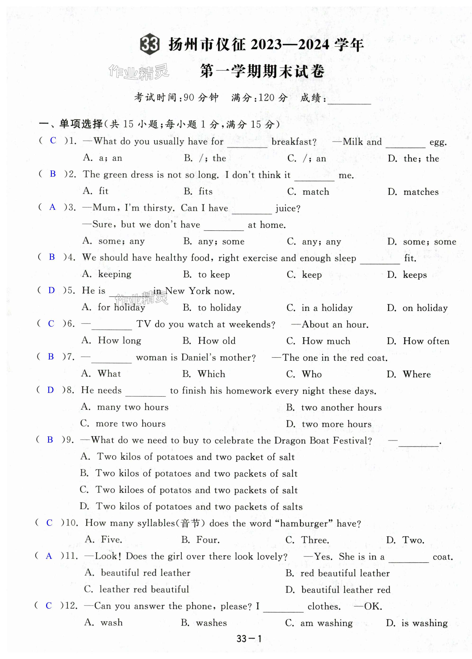 注:目前有些书本章节名称可能整理的还不是很完善,但都是按照顺序排列的,请同学们按照顺序仔细查找。练习册 2024年亮点给力大试卷七年级英语上册译林版 答案主要是用来给同学们做完题方便对答案用的,请勿直接抄袭。