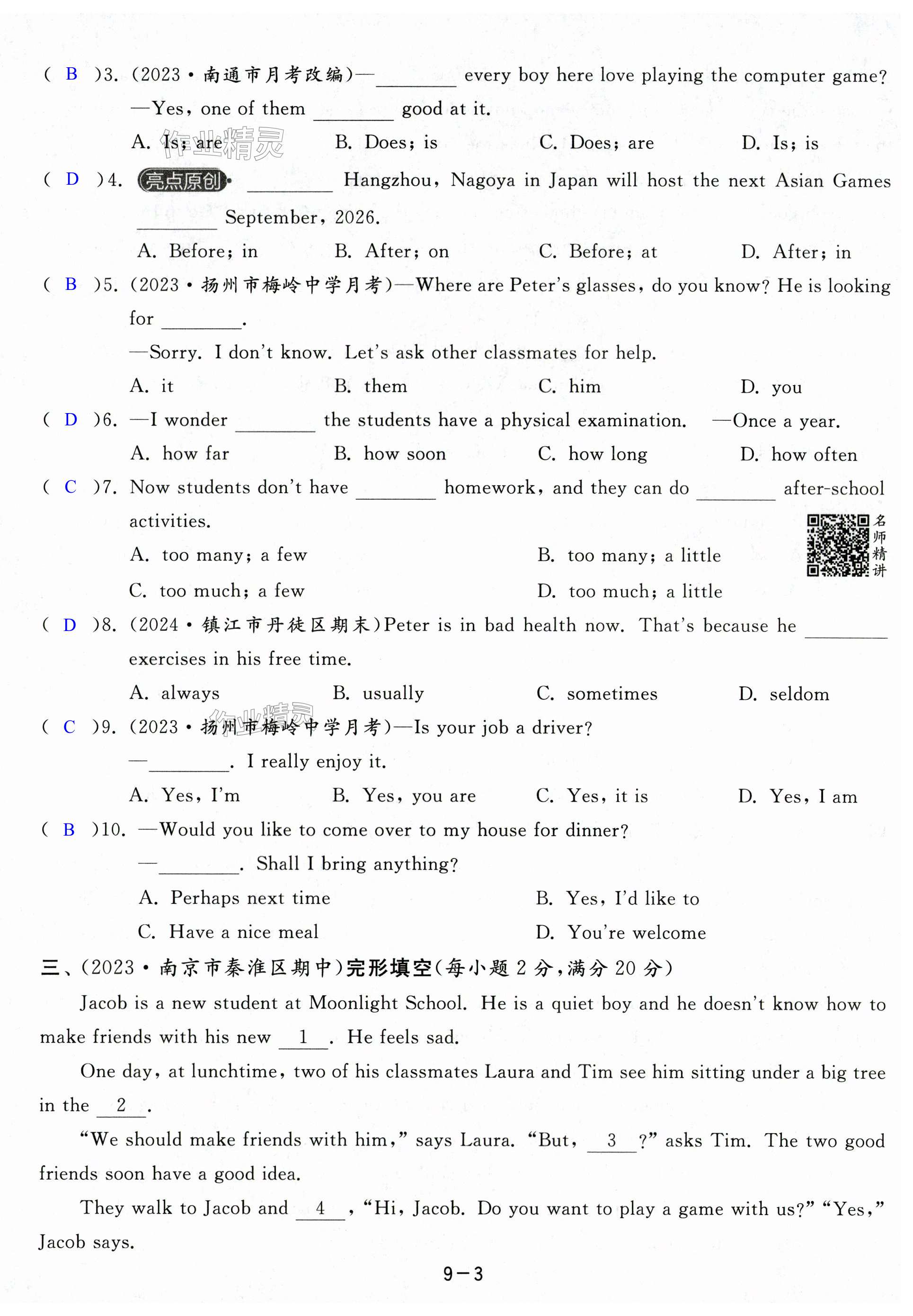 注:目前有些书本章节名称可能整理的还不是很完善,但都是按照顺序排列的,请同学们按照顺序仔细查找。练习册 2024年亮点给力大试卷七年级英语上册译林版 答案主要是用来给同学们做完题方便对答案用的,请勿直接抄袭。