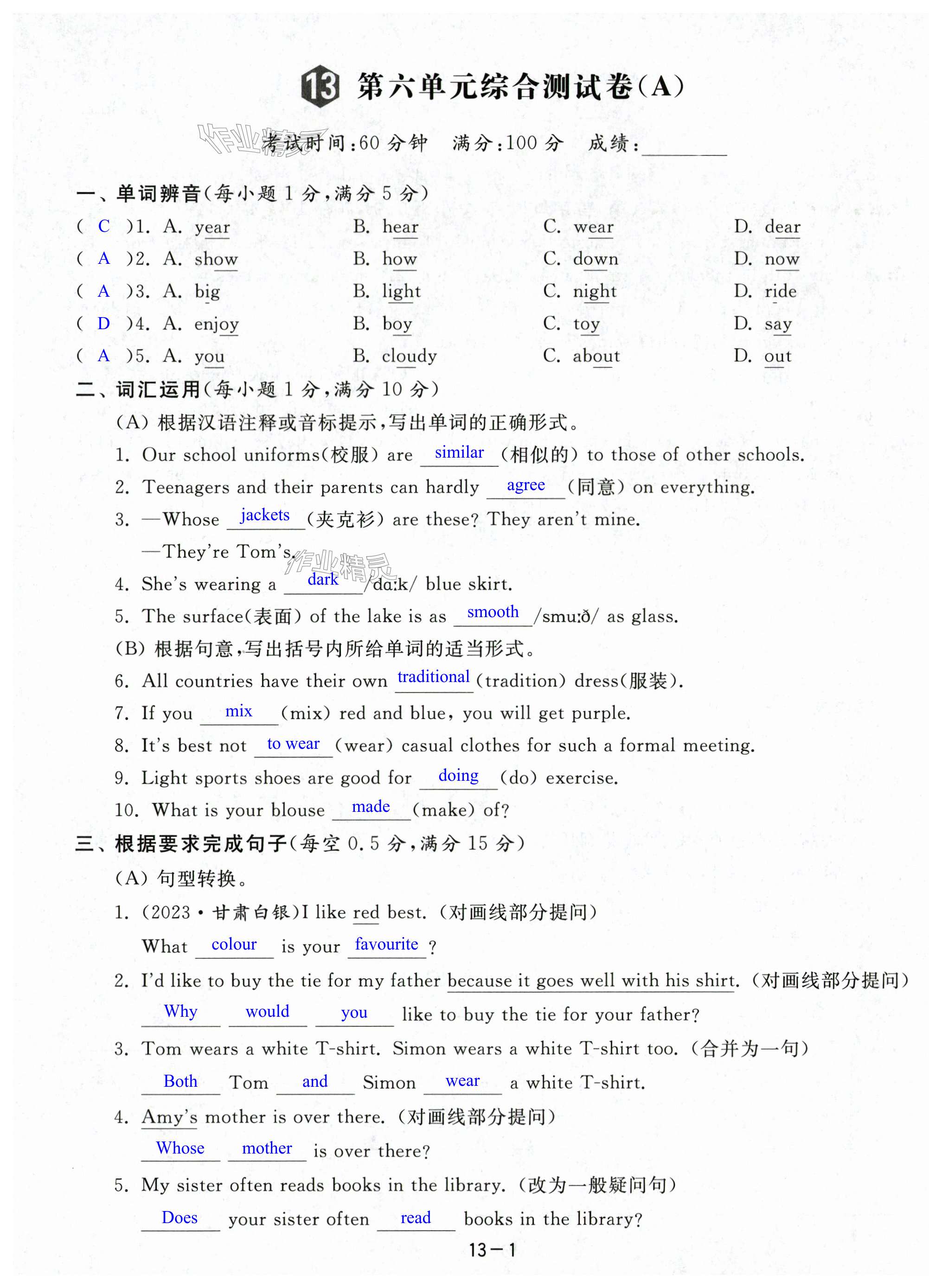 注:目前有些书本章节名称可能整理的还不是很完善,但都是按照顺序排列的,请同学们按照顺序仔细查找。练习册 2024年亮点给力大试卷七年级英语上册译林版 答案主要是用来给同学们做完题方便对答案用的,请勿直接抄袭。